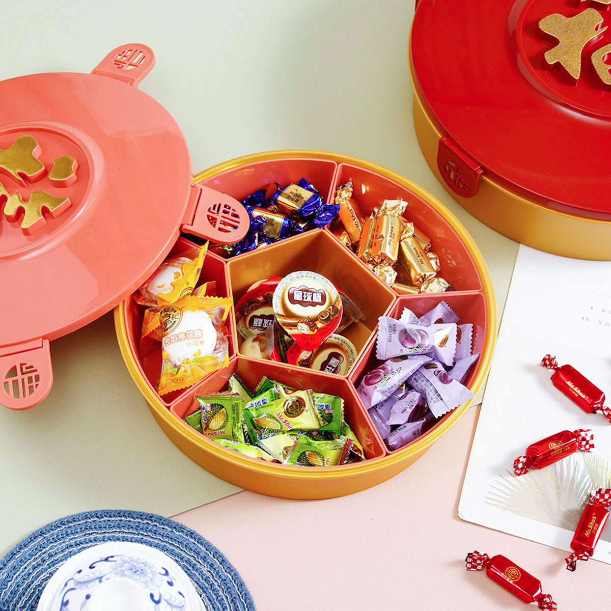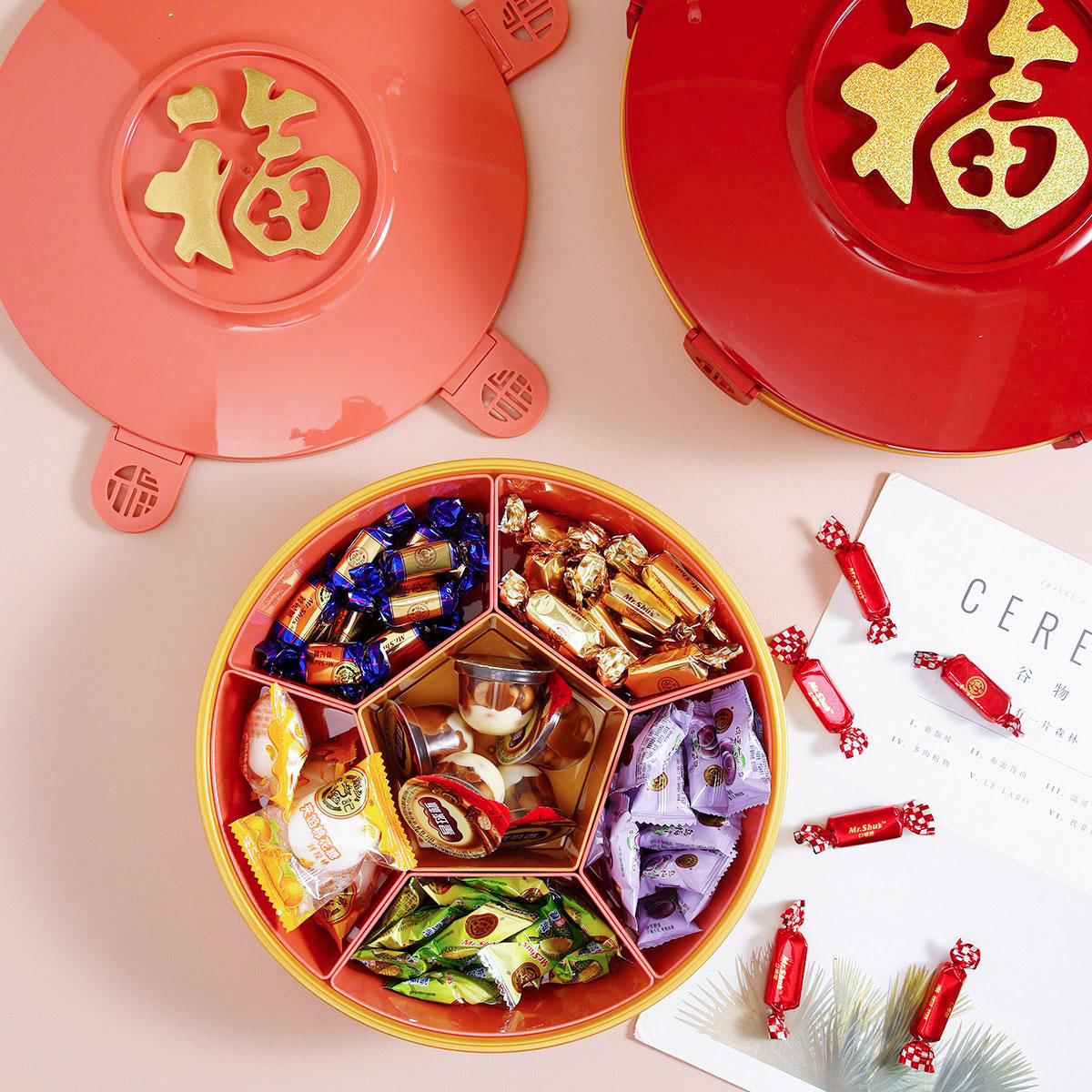 福韻方形/圓形小號(hào)/大號(hào)分格糖果盒