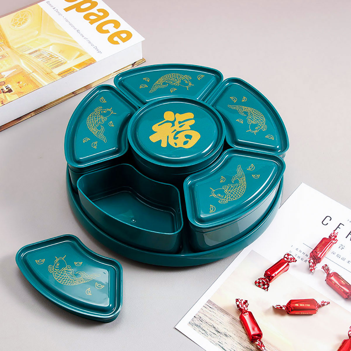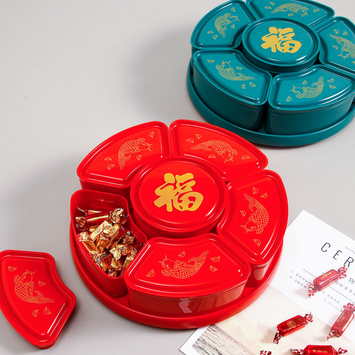 福魚旋轉(zhuǎn)糖果盒(紅/綠)