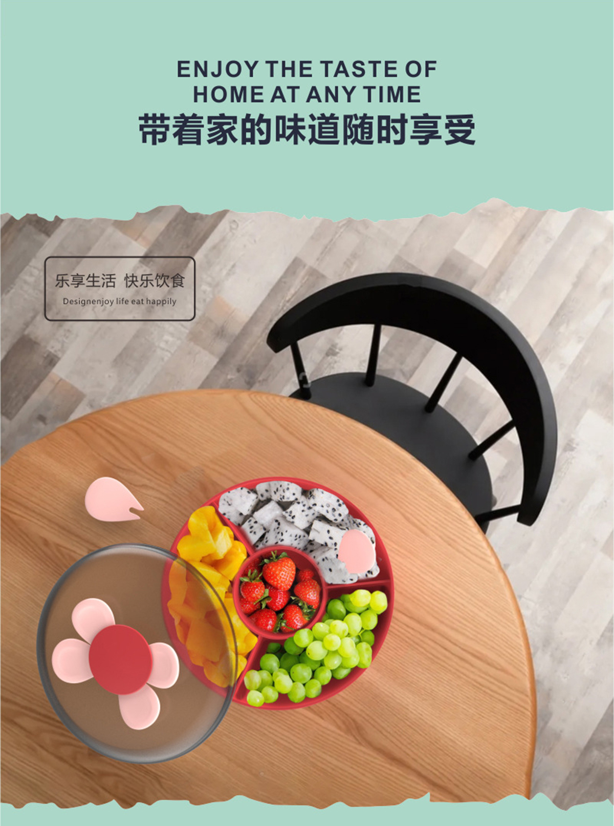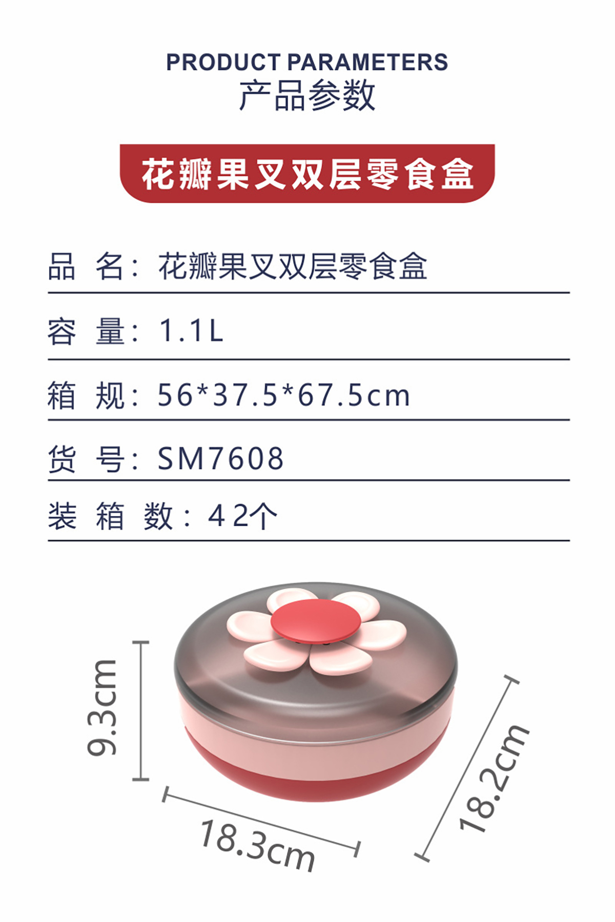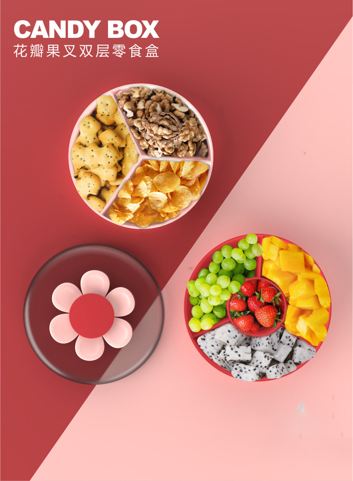 花瓣果叉雙層零食盒1.1L