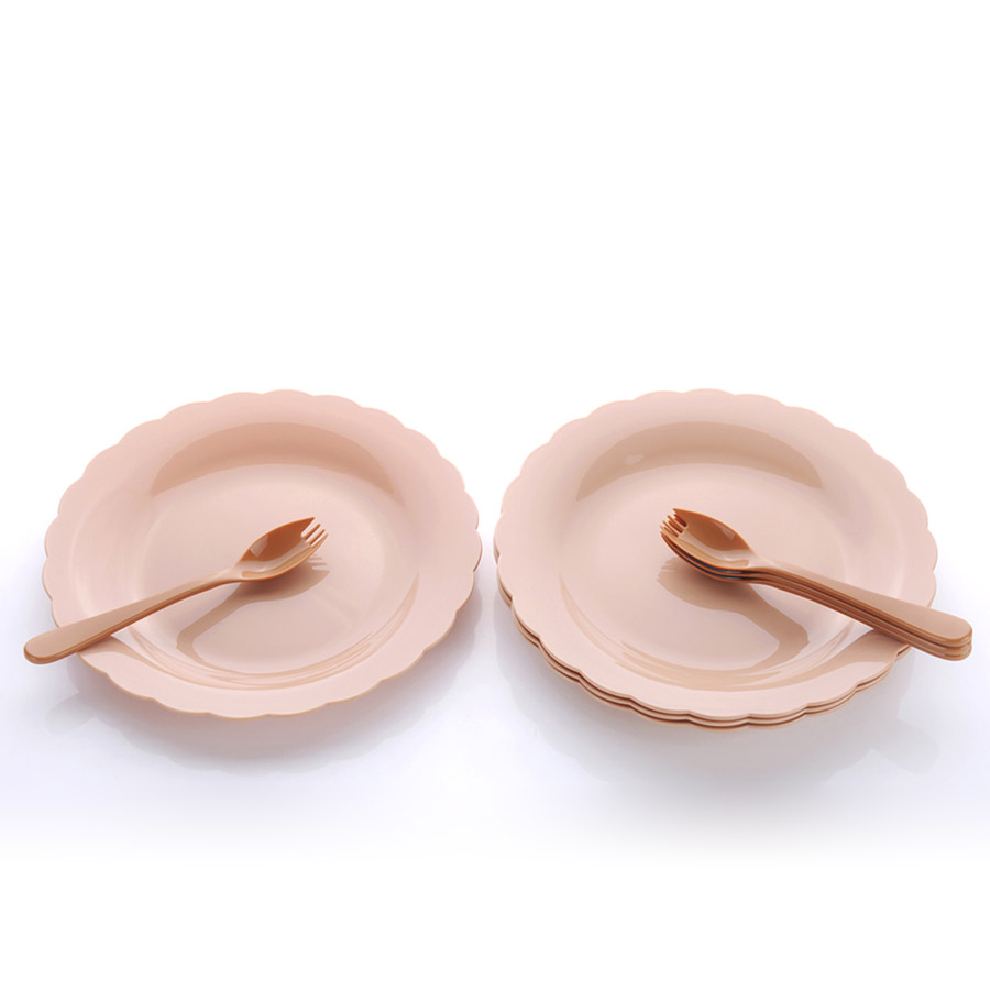 得力熊歐式大號(hào)花邊圓形餐盤(4pcs)( 配4pcs叉匙)