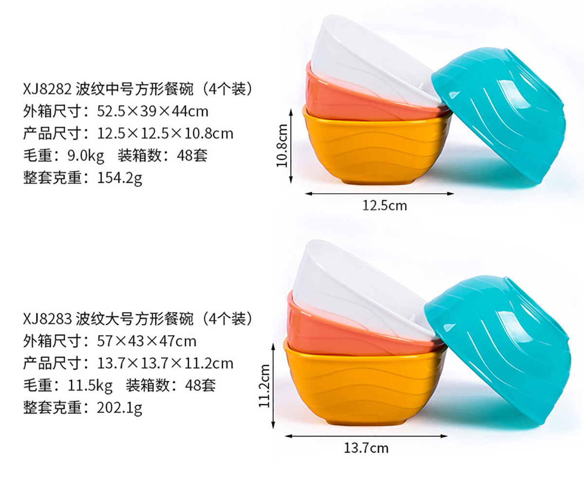 波紋圓形/方形餐碗 小號/中號/大號(4個裝)