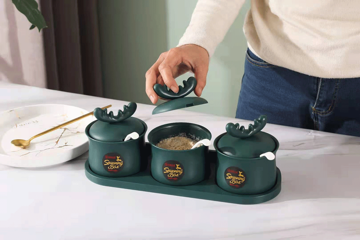 掛壁萌鹿兩格/三格調(diào)味盒