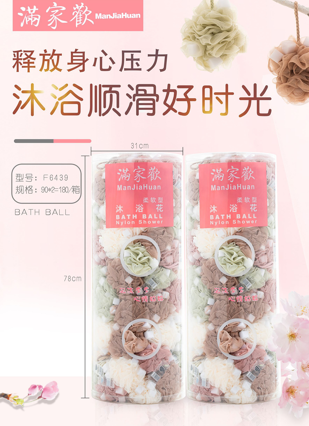 筒裝心型海綿沐浴花
