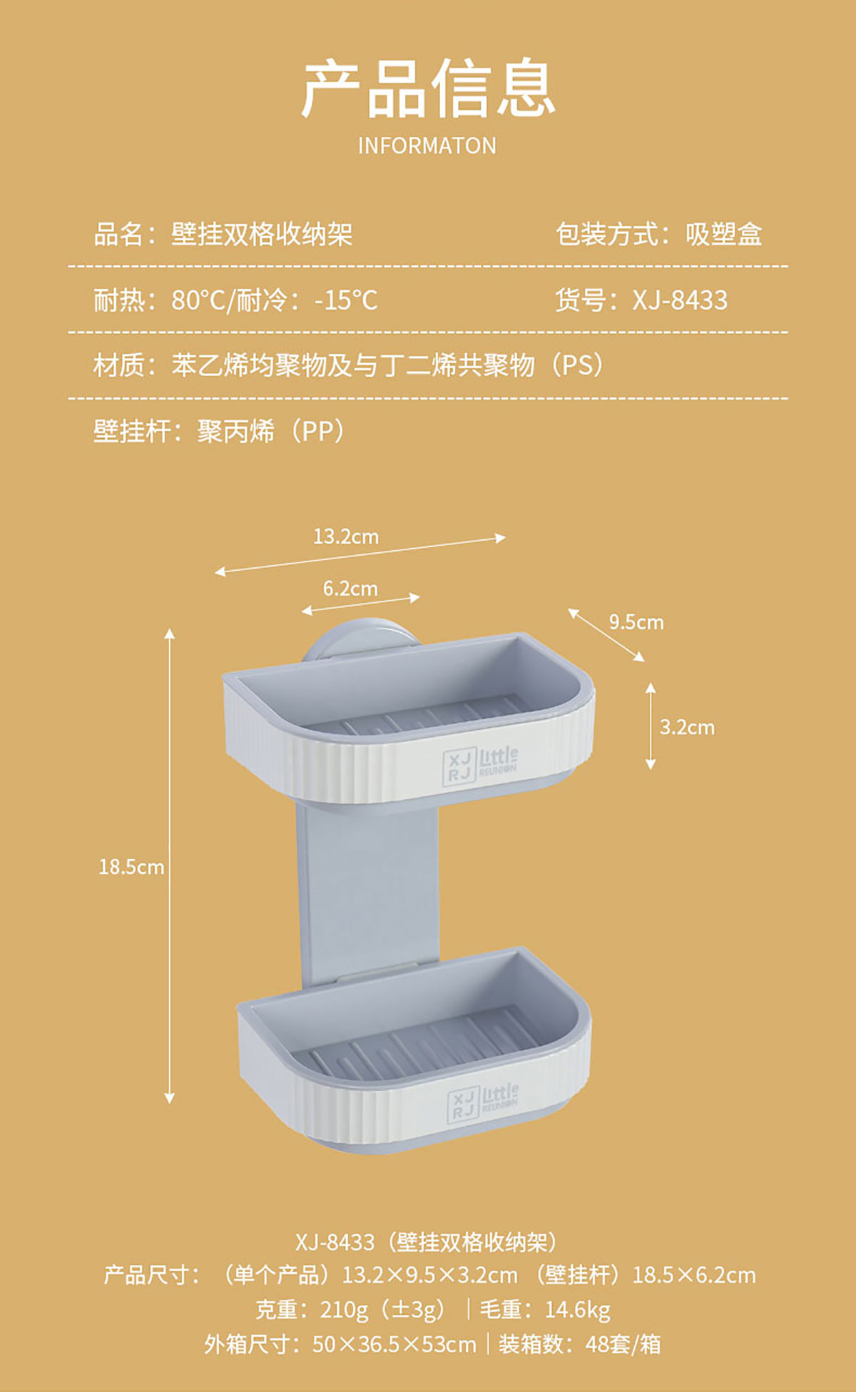 Size: 單個(gè)產(chǎn)品:132*95*32mm 壁掛桿:185*62mm 吸塑盒包裝:257*170*50mm