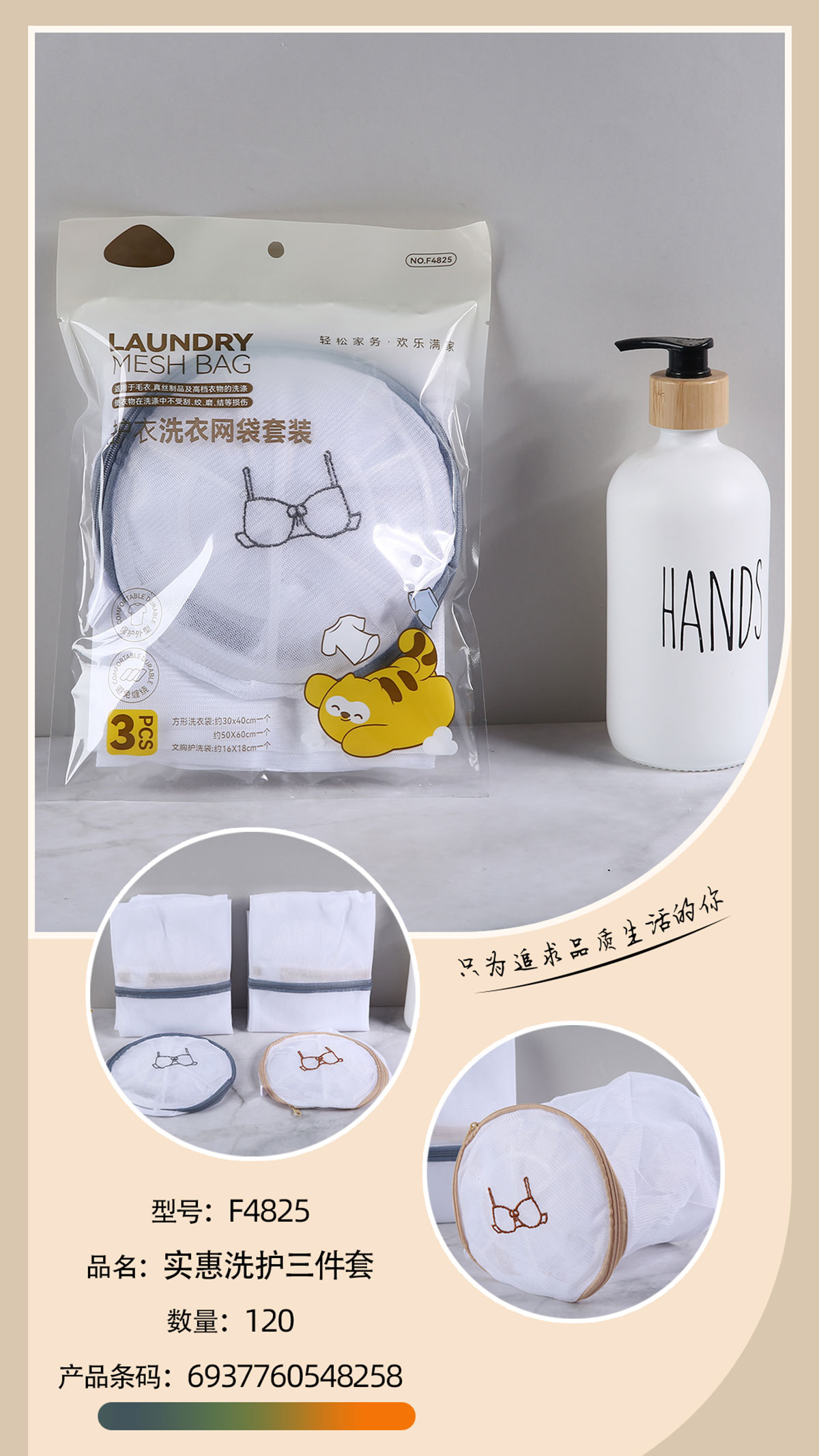 Size: 方形洗衣袋:300*400mm一個,500*600mm一個,文胸護洗袋:160*180mm一個