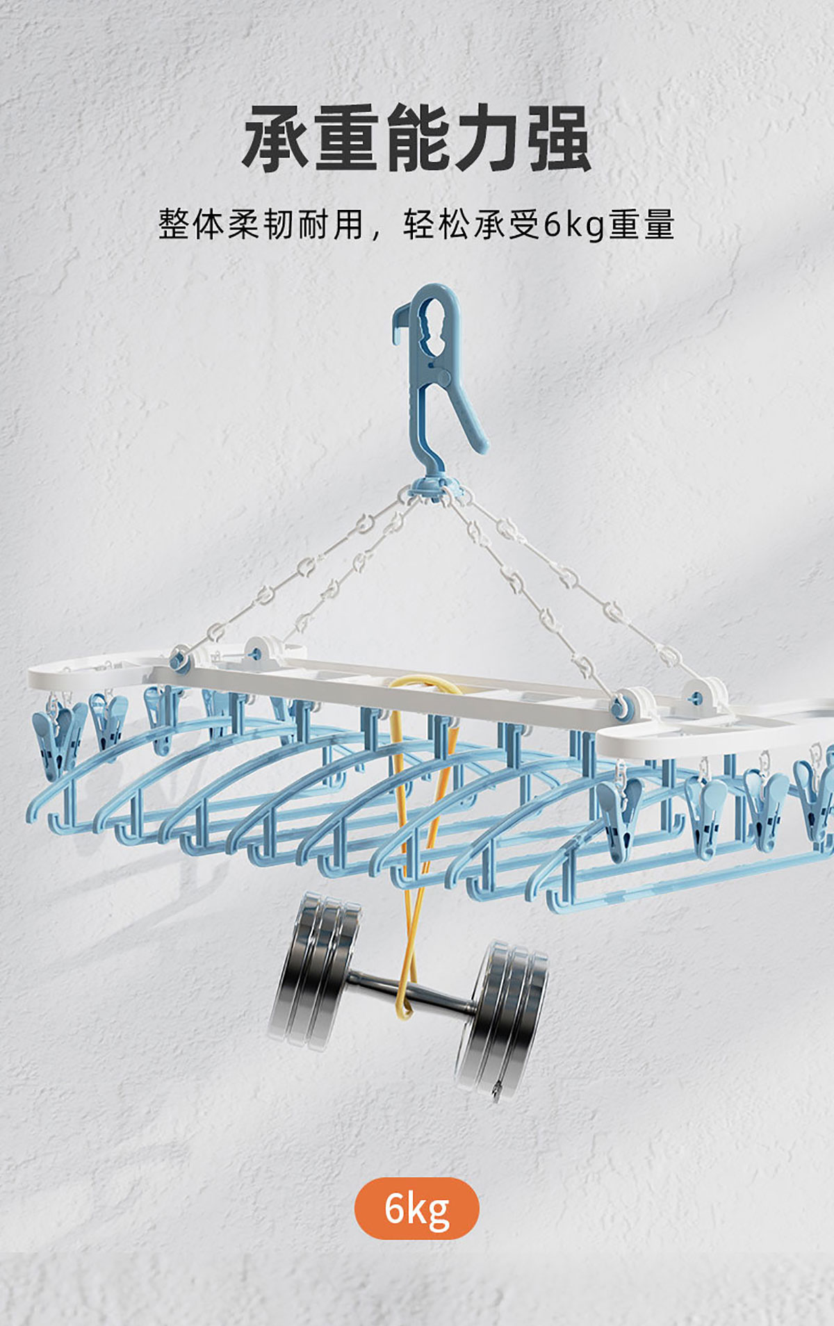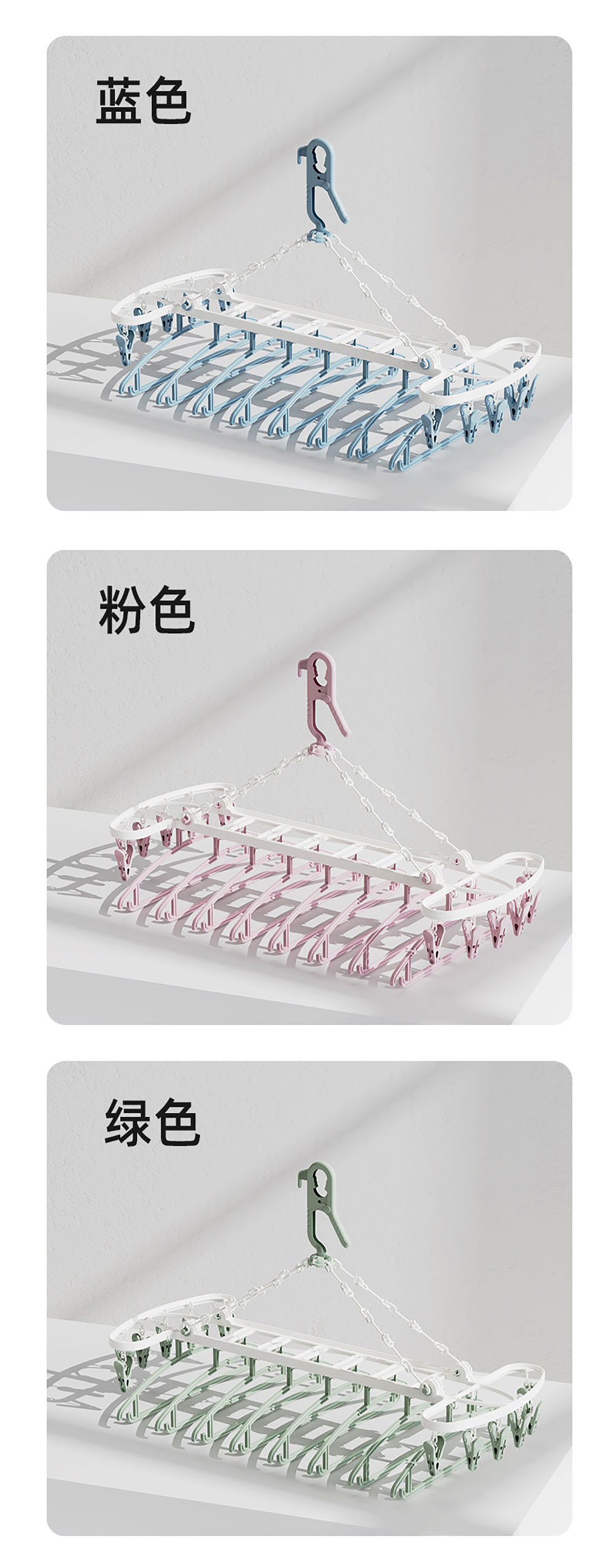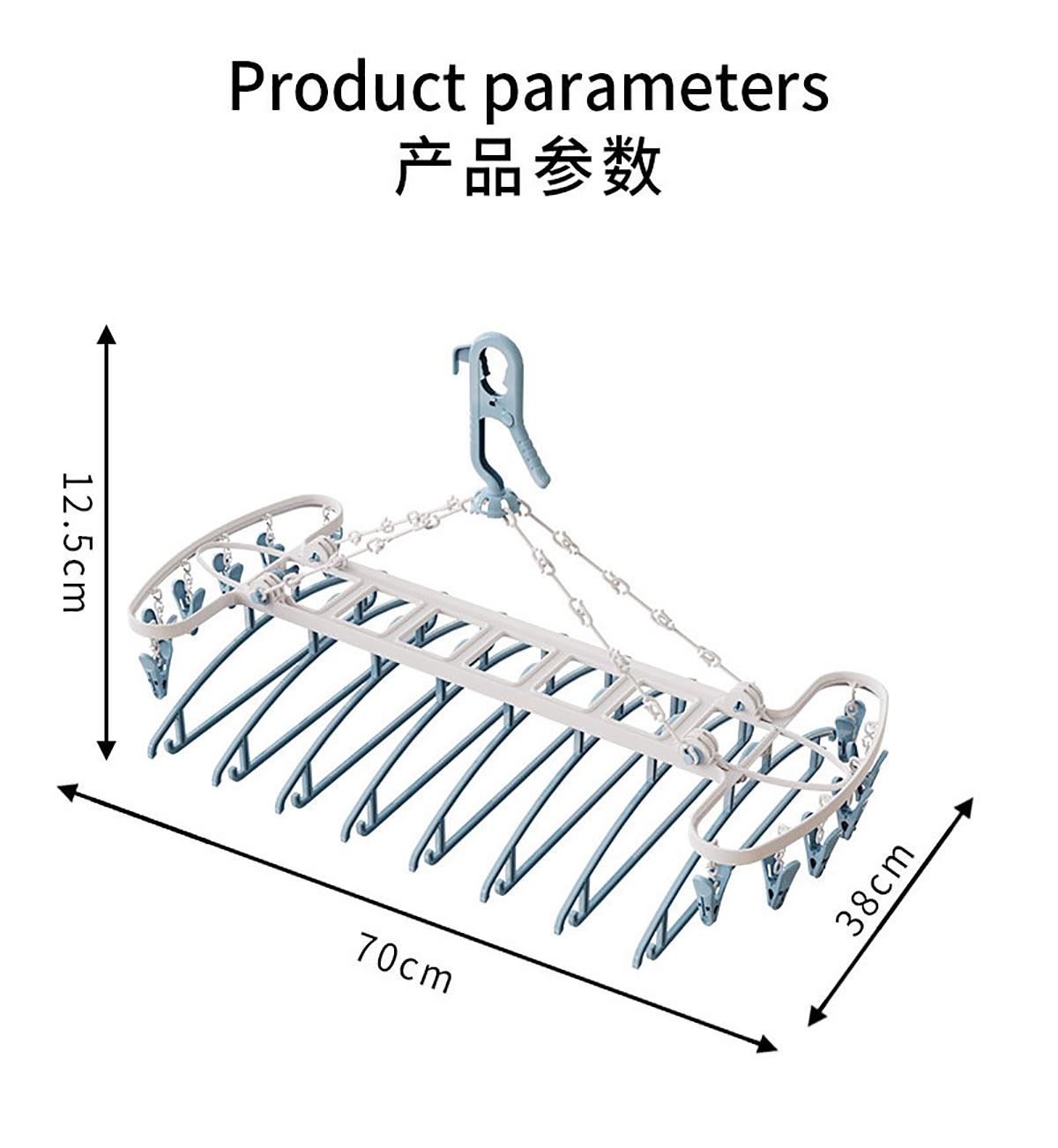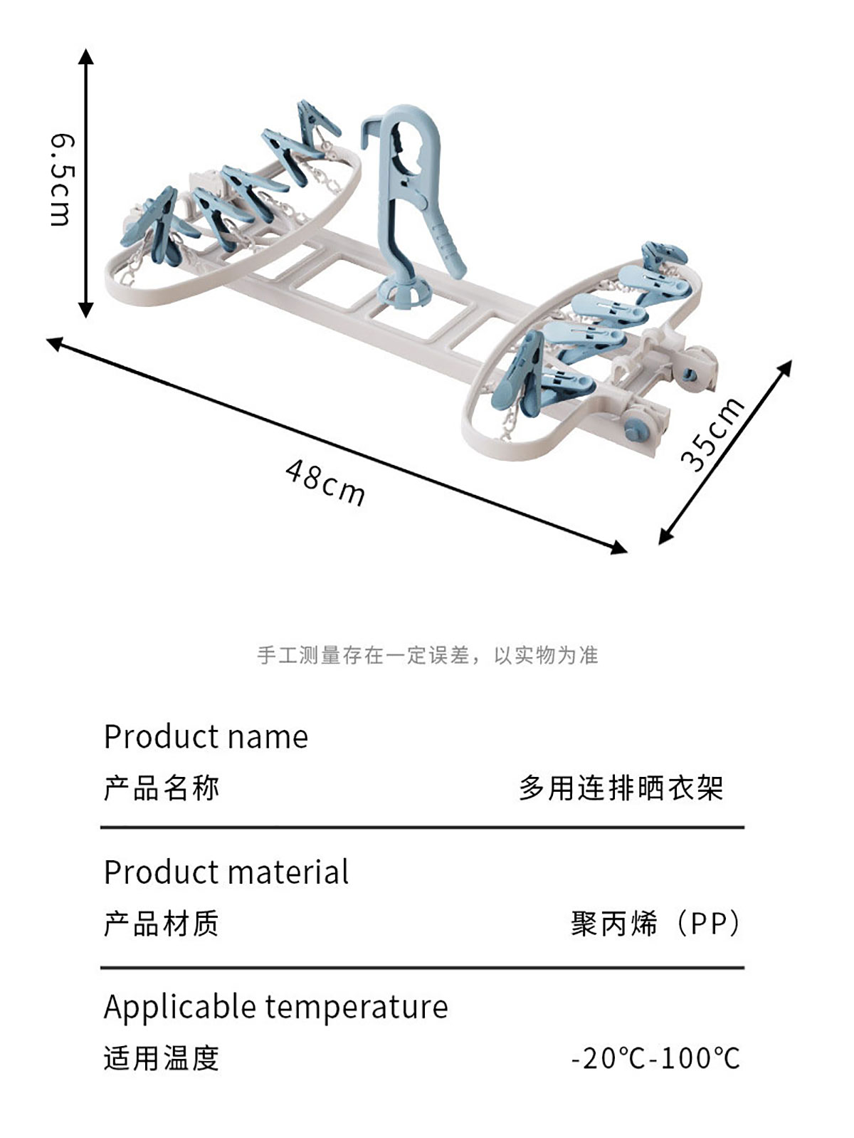 Size: 8衣架+12衣夾/折合:480*350*65mm 展開(kāi):700*380*125mm