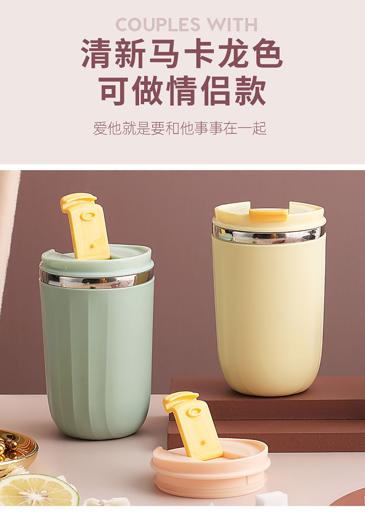 500ml馬卡龍翻扣304不銹鋼馬克杯