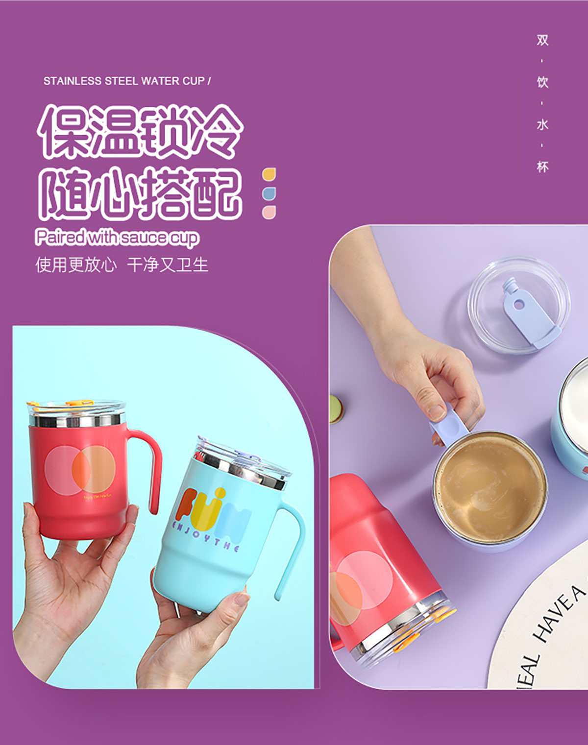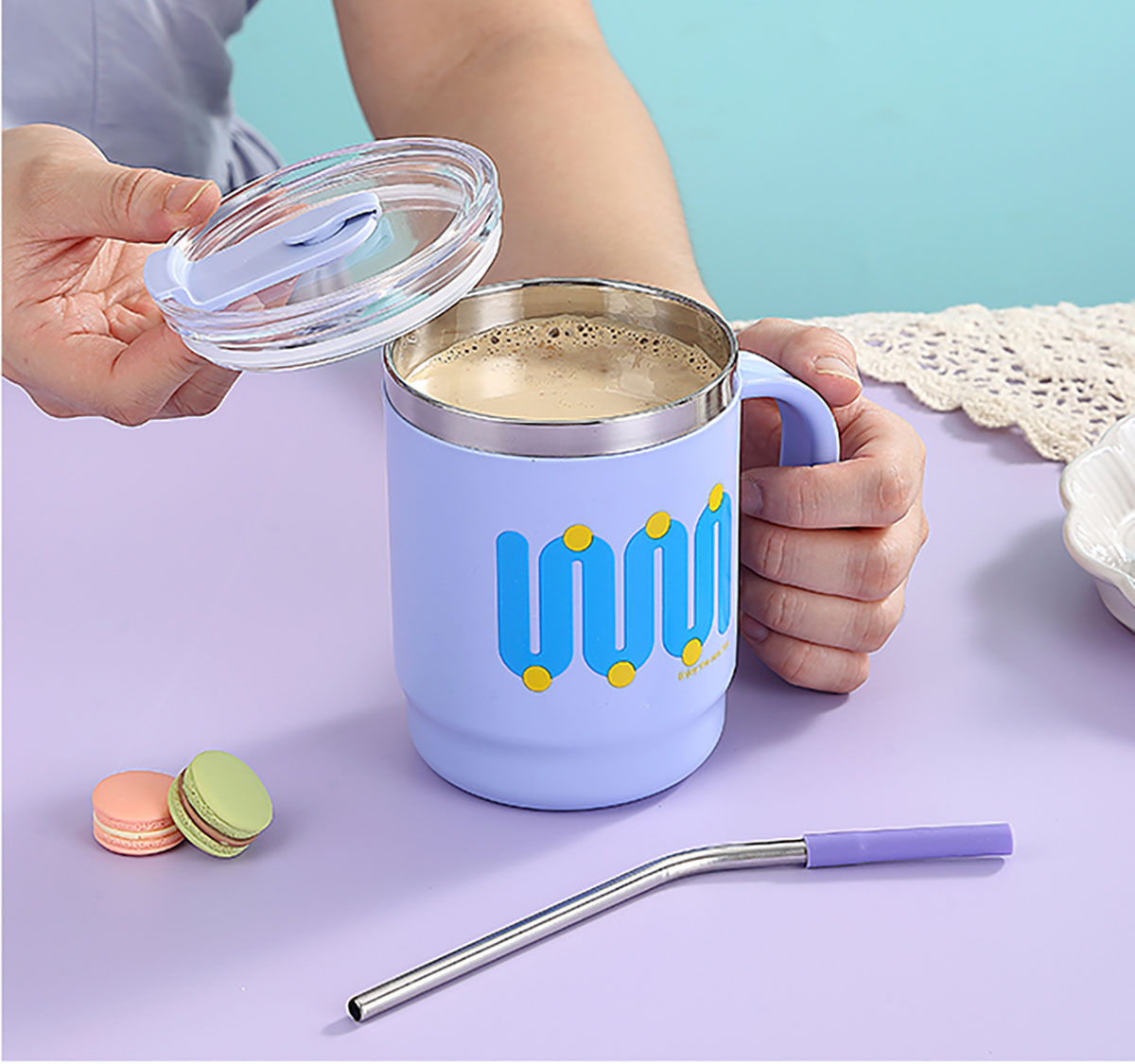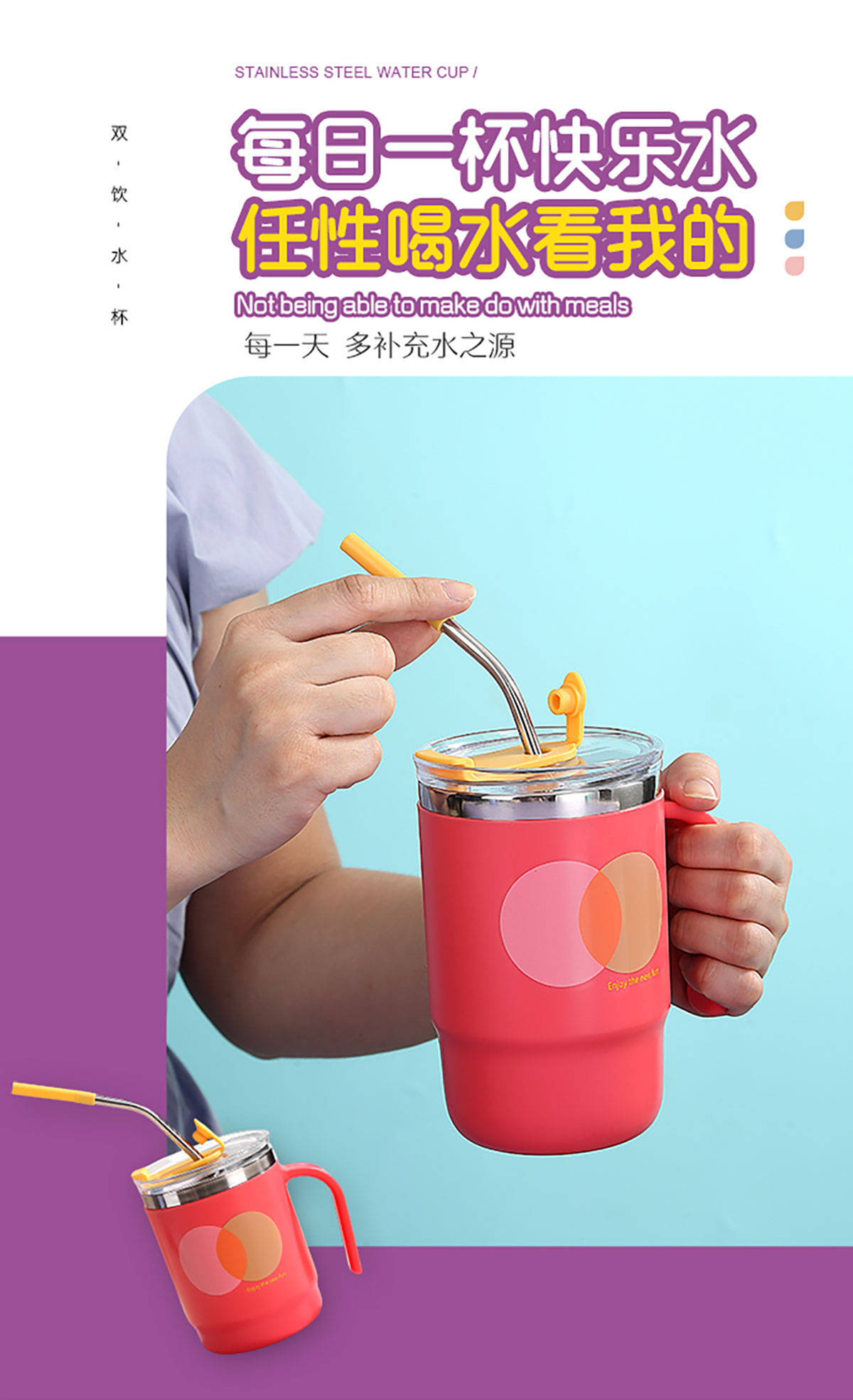 400ml/500ml時(shí)尚不銹鋼雙飲杯(配不銹鋼吸管)