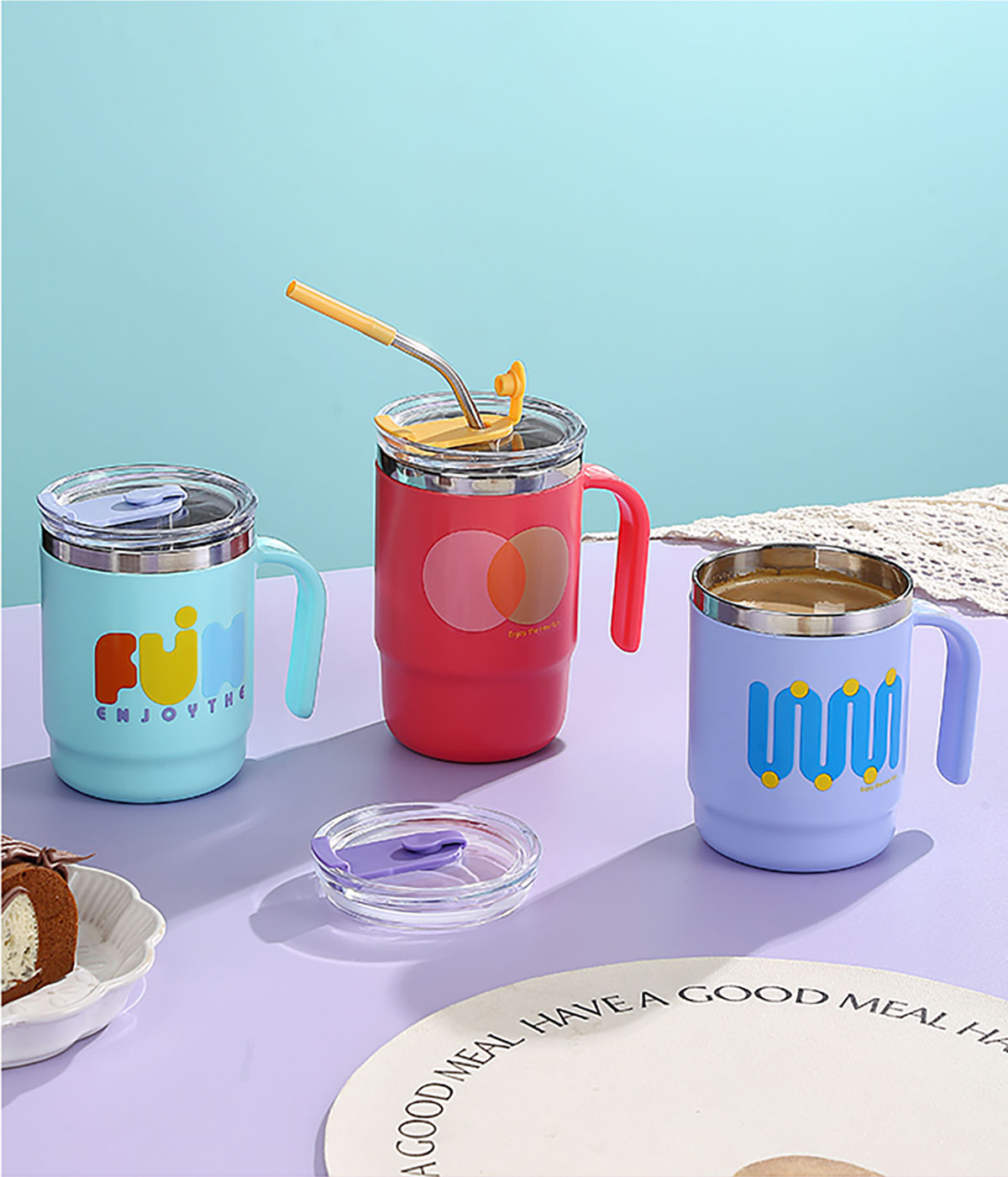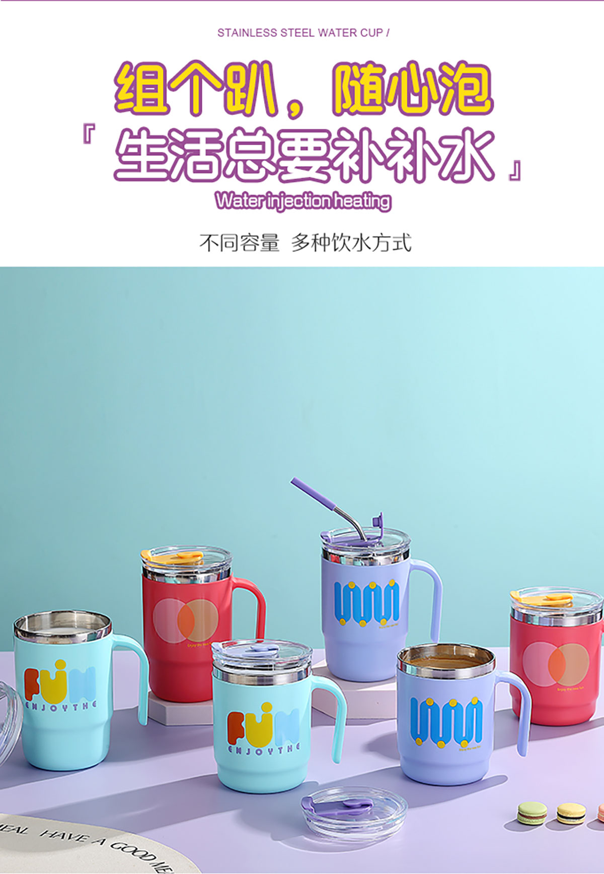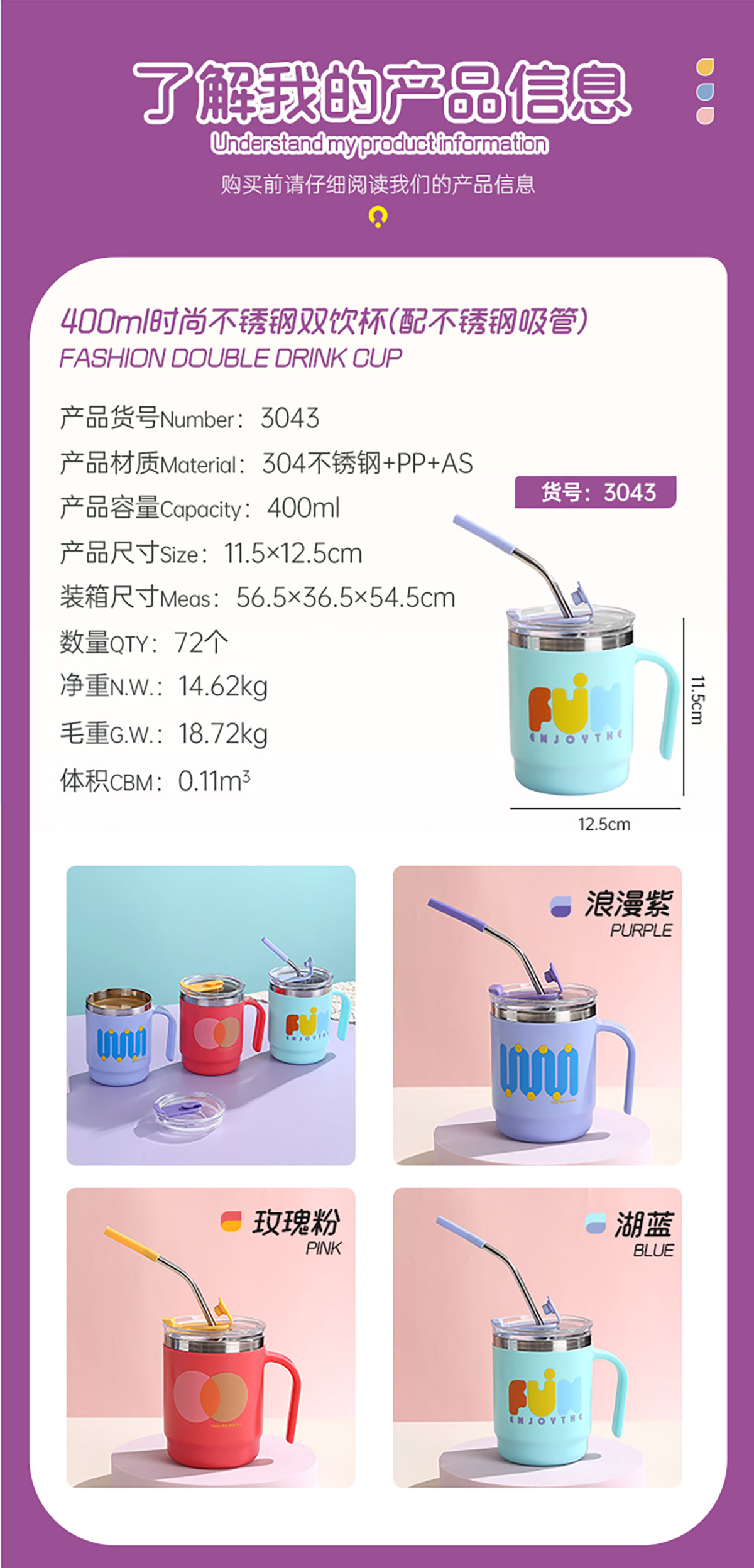 400ml/500ml時(shí)尚不銹鋼雙飲杯(配不銹鋼吸管)