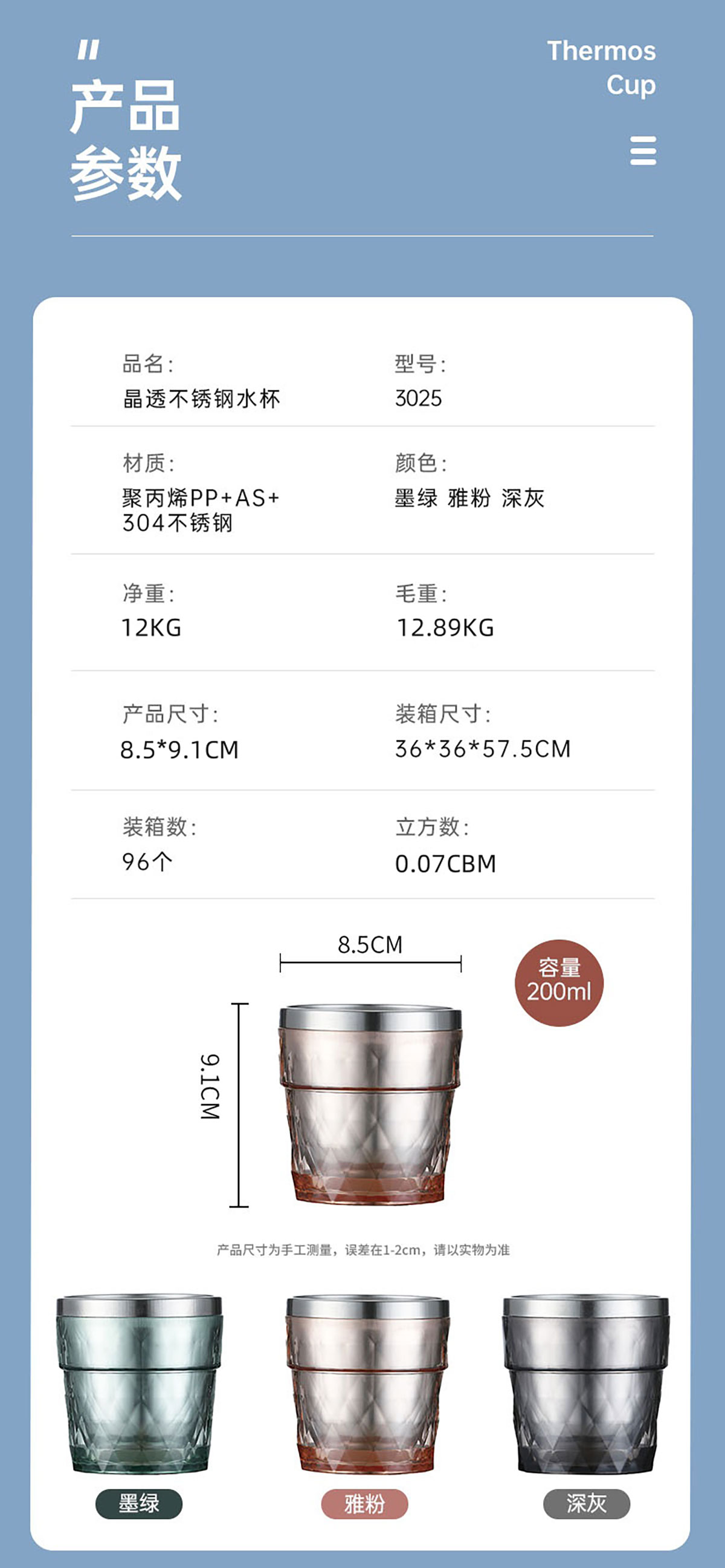 200ml晶透不銹鋼水杯
