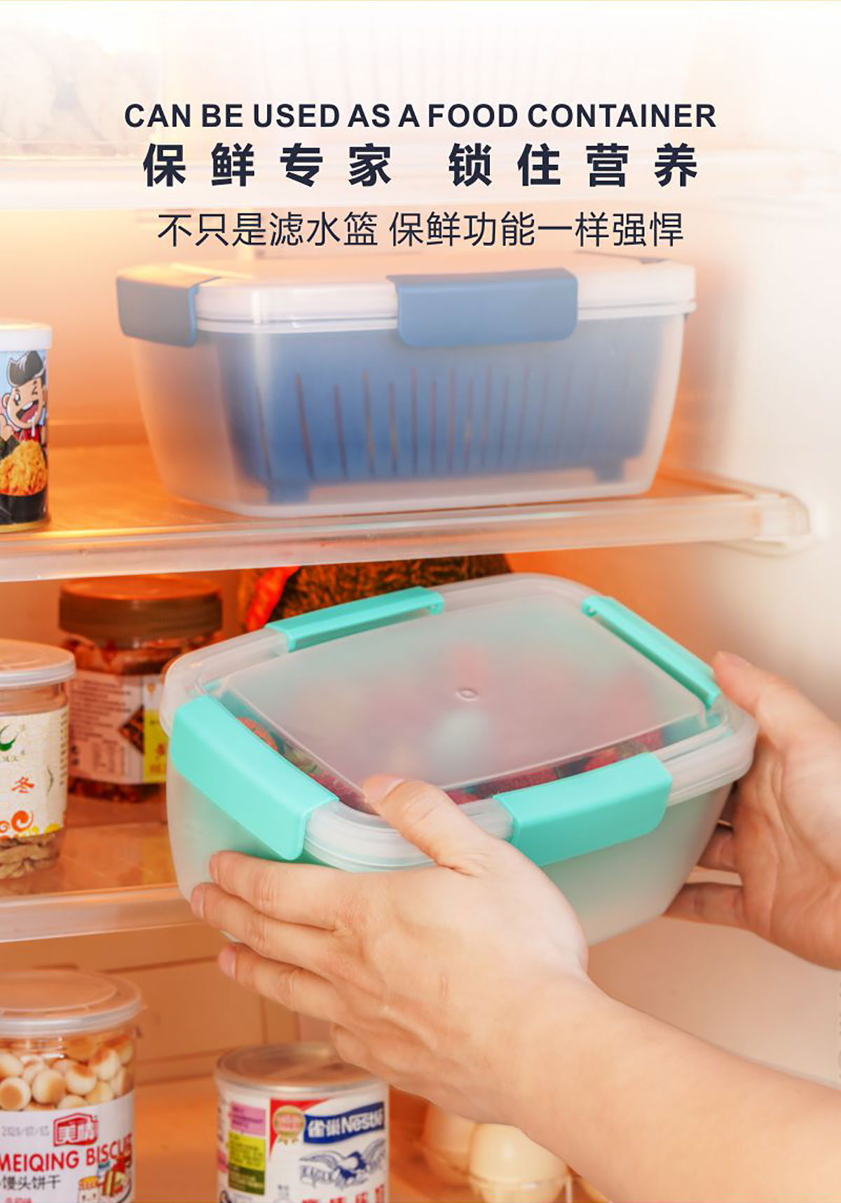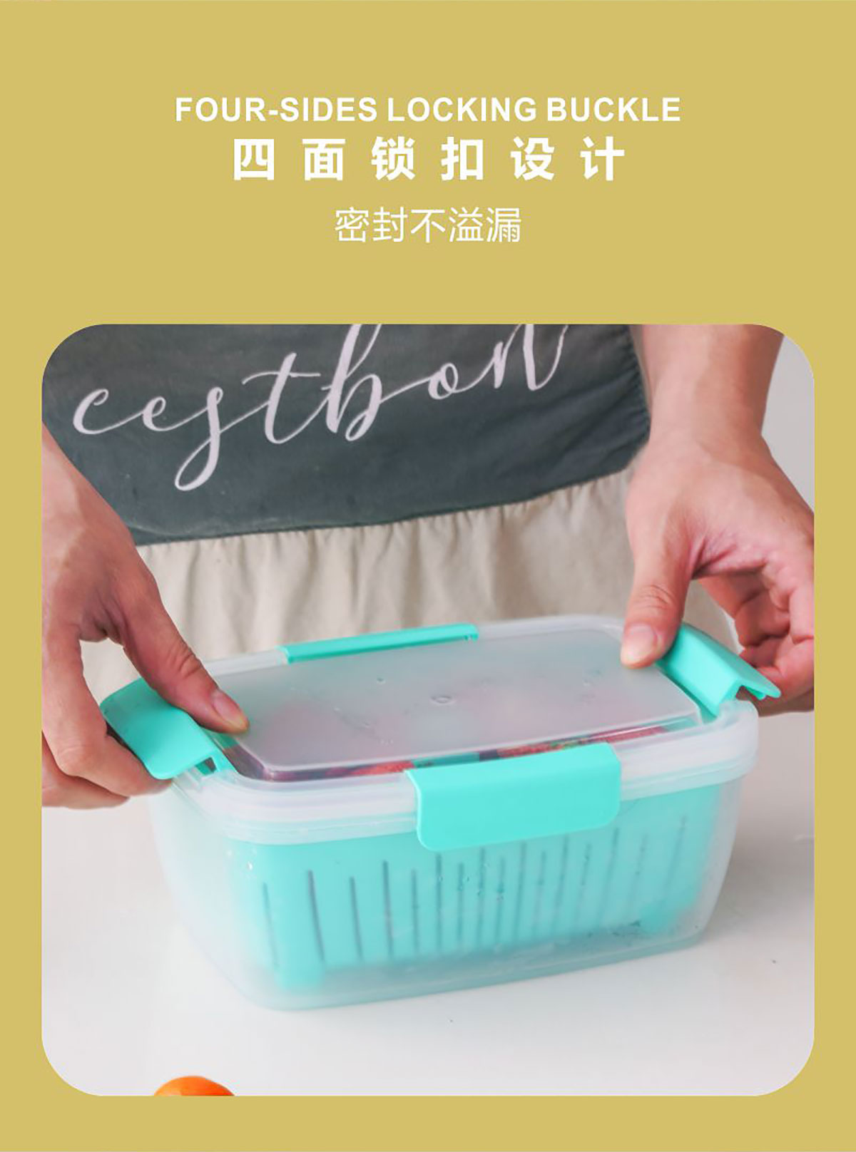 四面扣瀝水保鮮盒長方形2L 22年新色