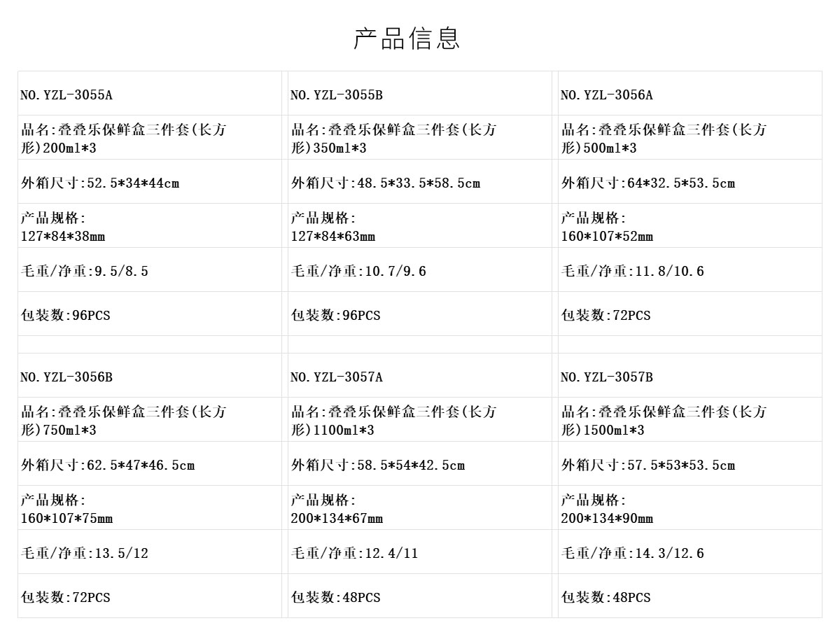 疊疊樂保鮮盒三件套(長方形)系列 22年新色