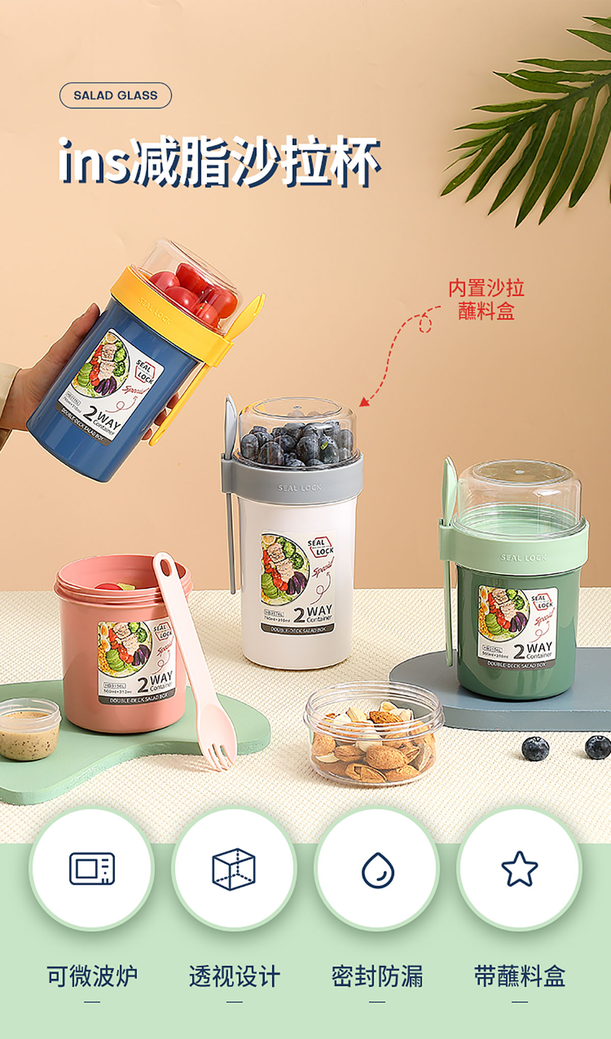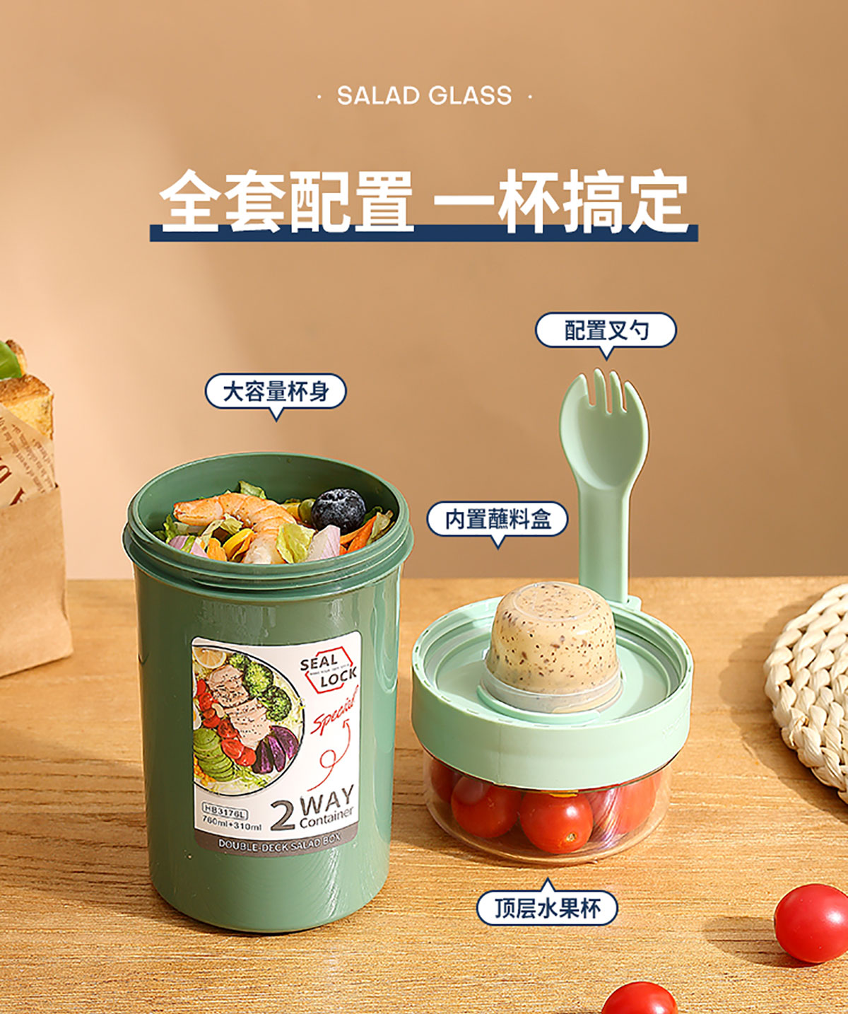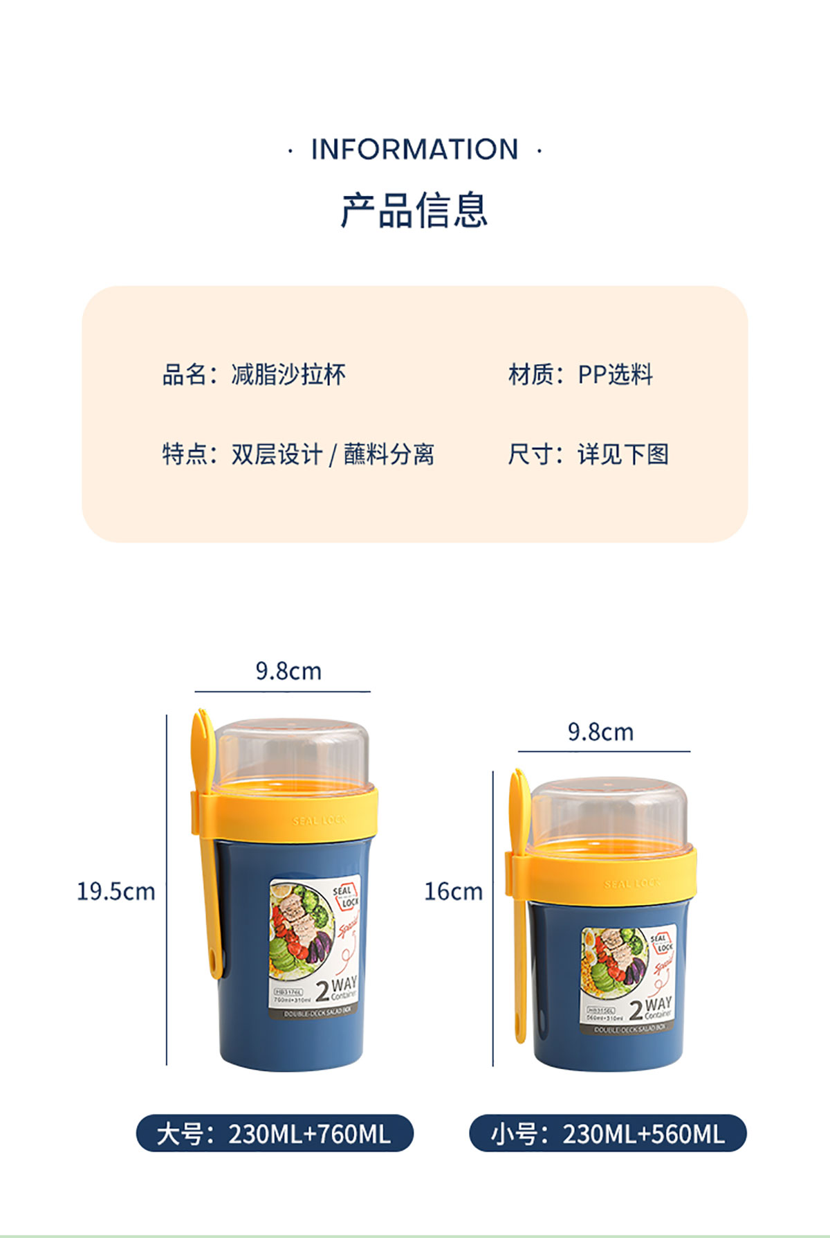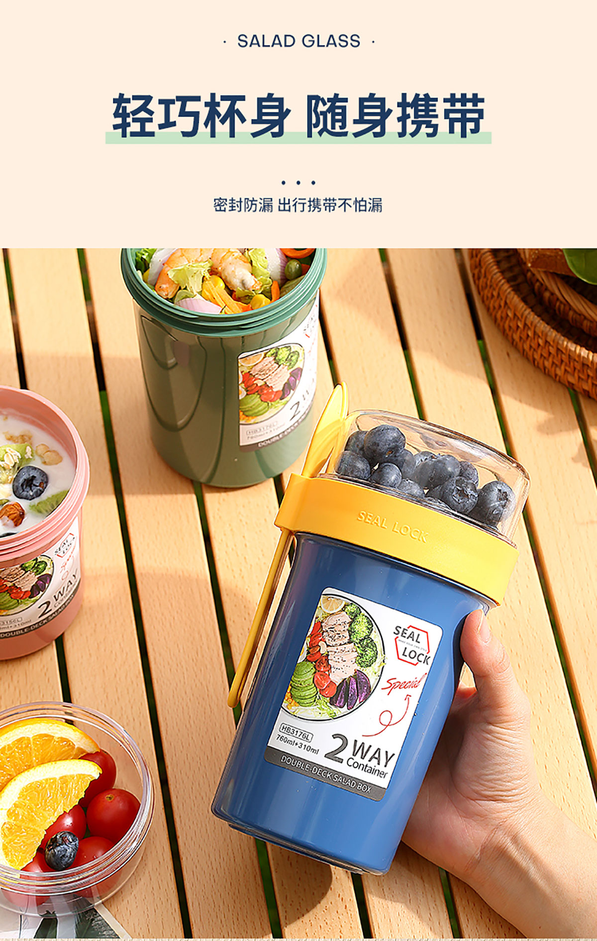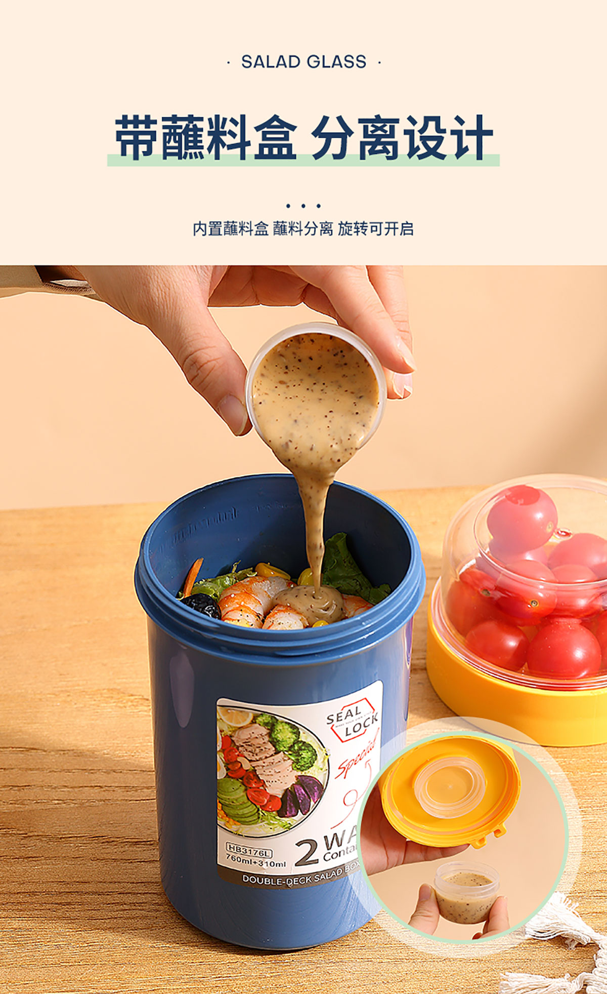 雙層密封沙拉杯上層230ml+下層560ml/上層230ml+下層760ml