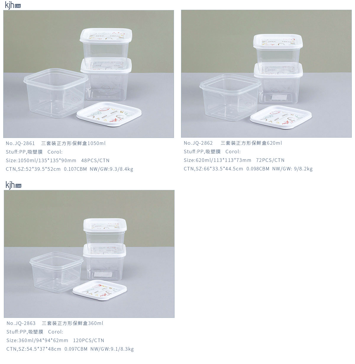 Size: JQ-2861:1050ml/135*135*90mm