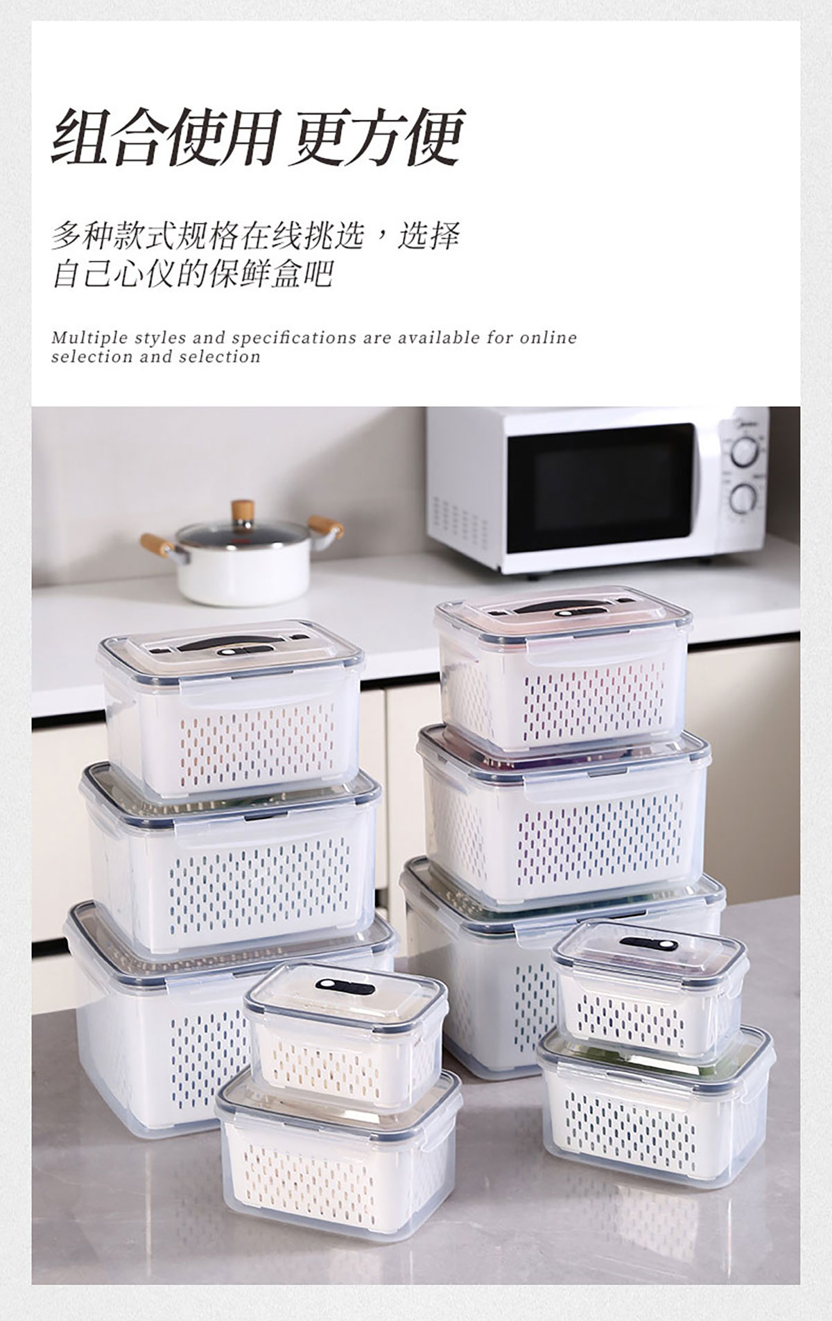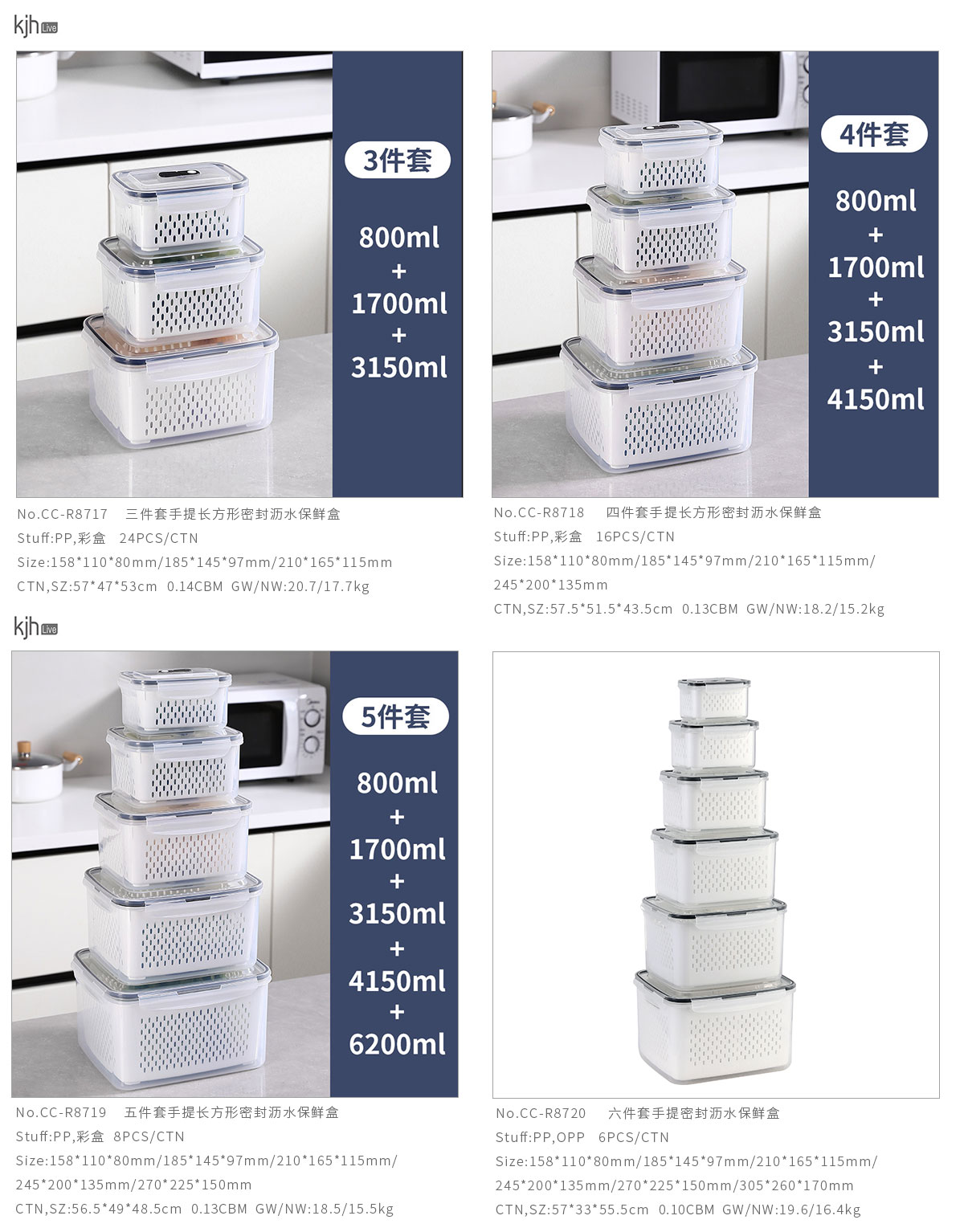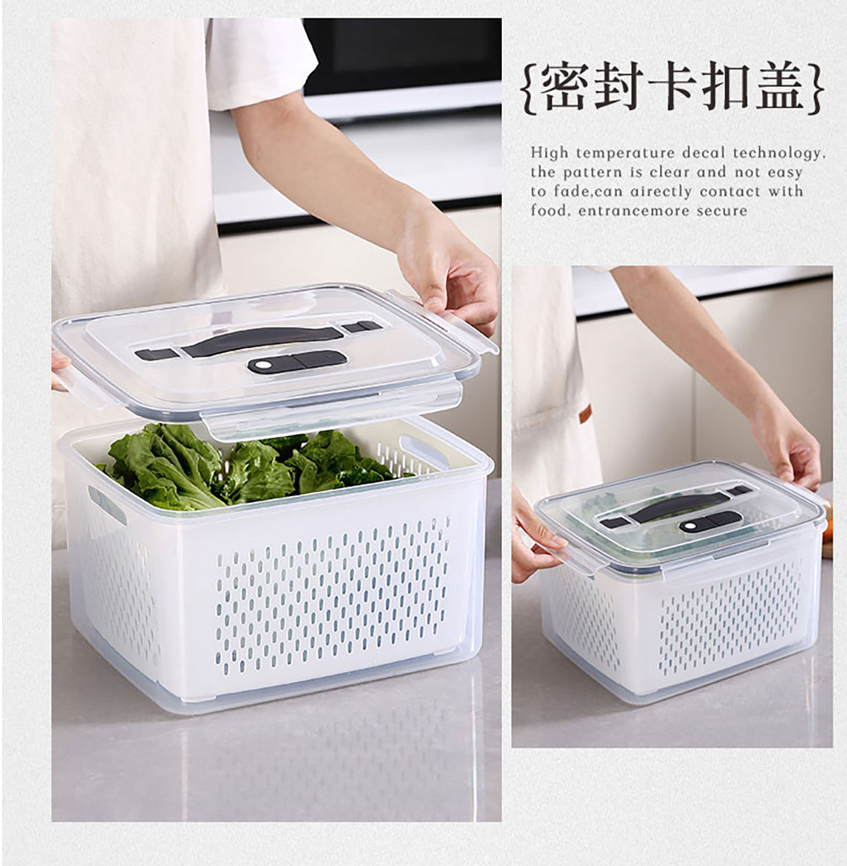 三件/四件/五件/六件套手提長(zhǎng)方形密封瀝水保鮮盒