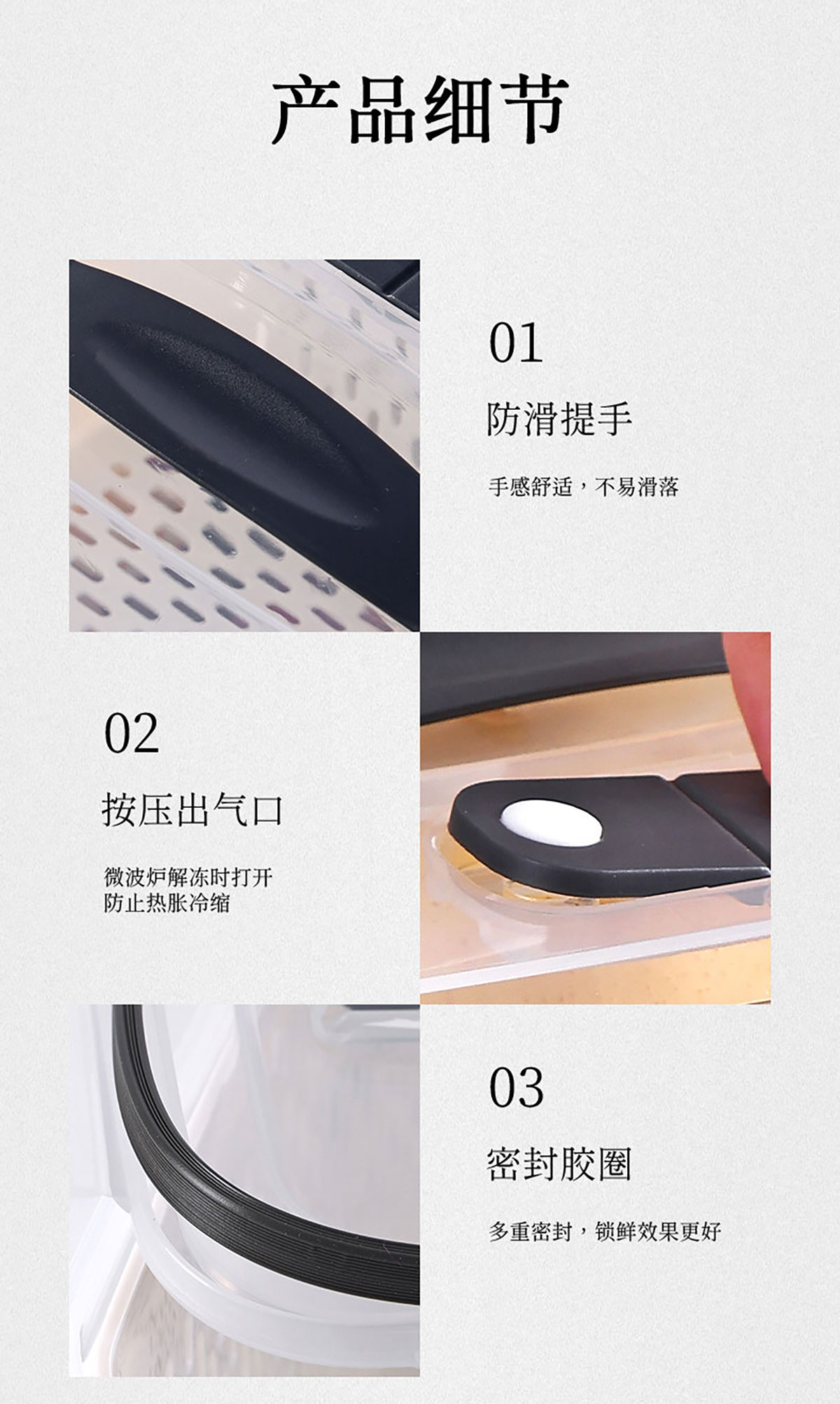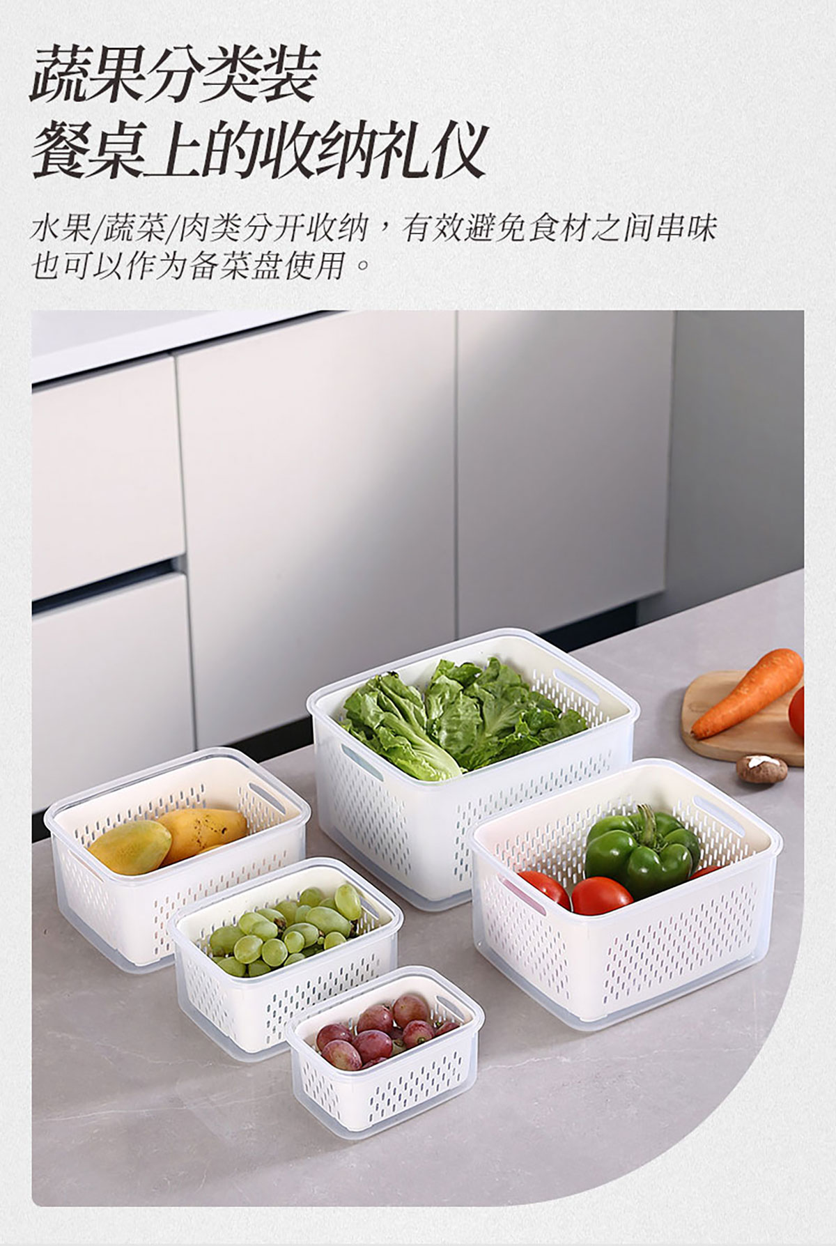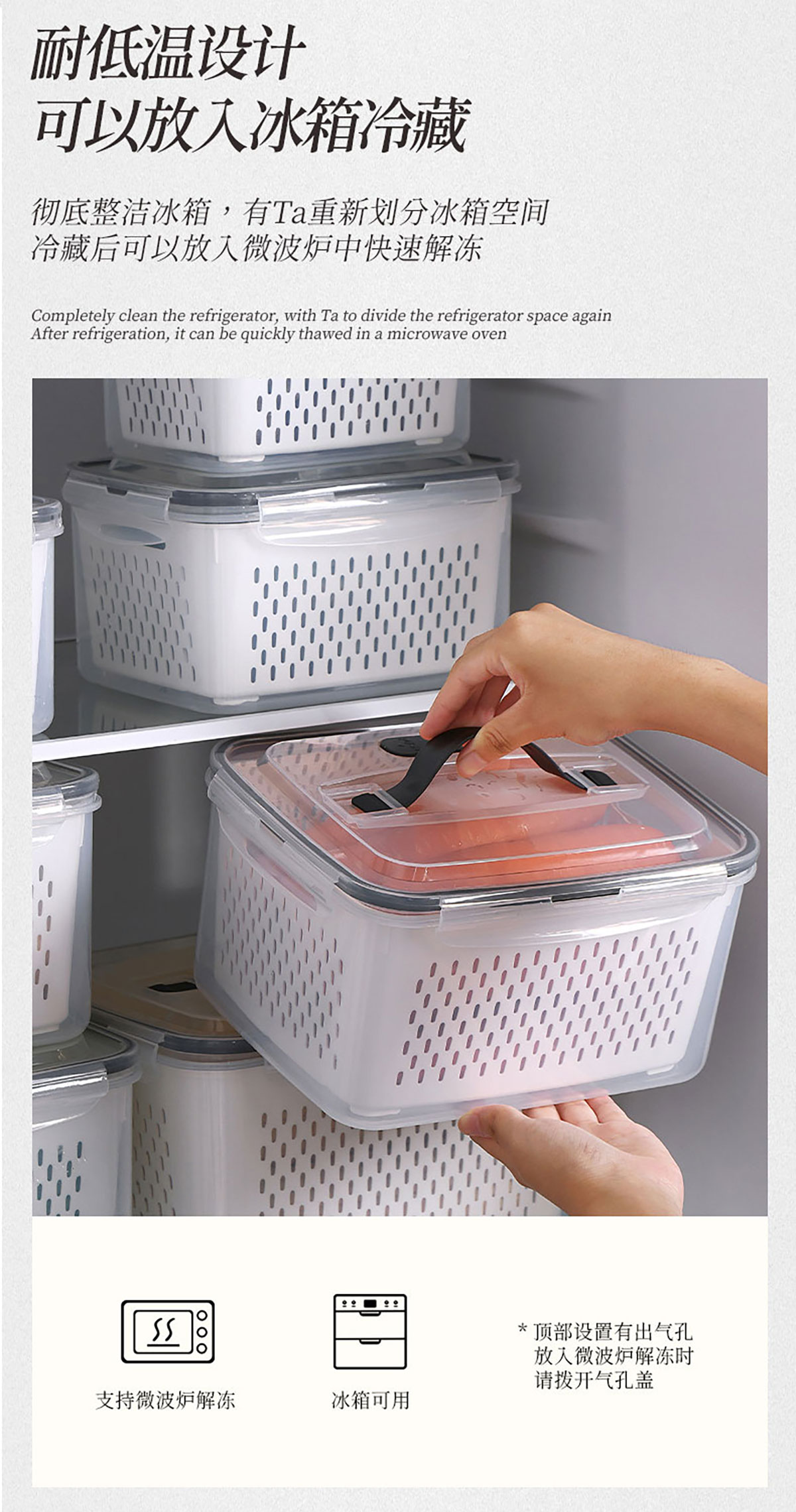 三件/四件/五件/六件套手提長(zhǎng)方形密封瀝水保鮮盒