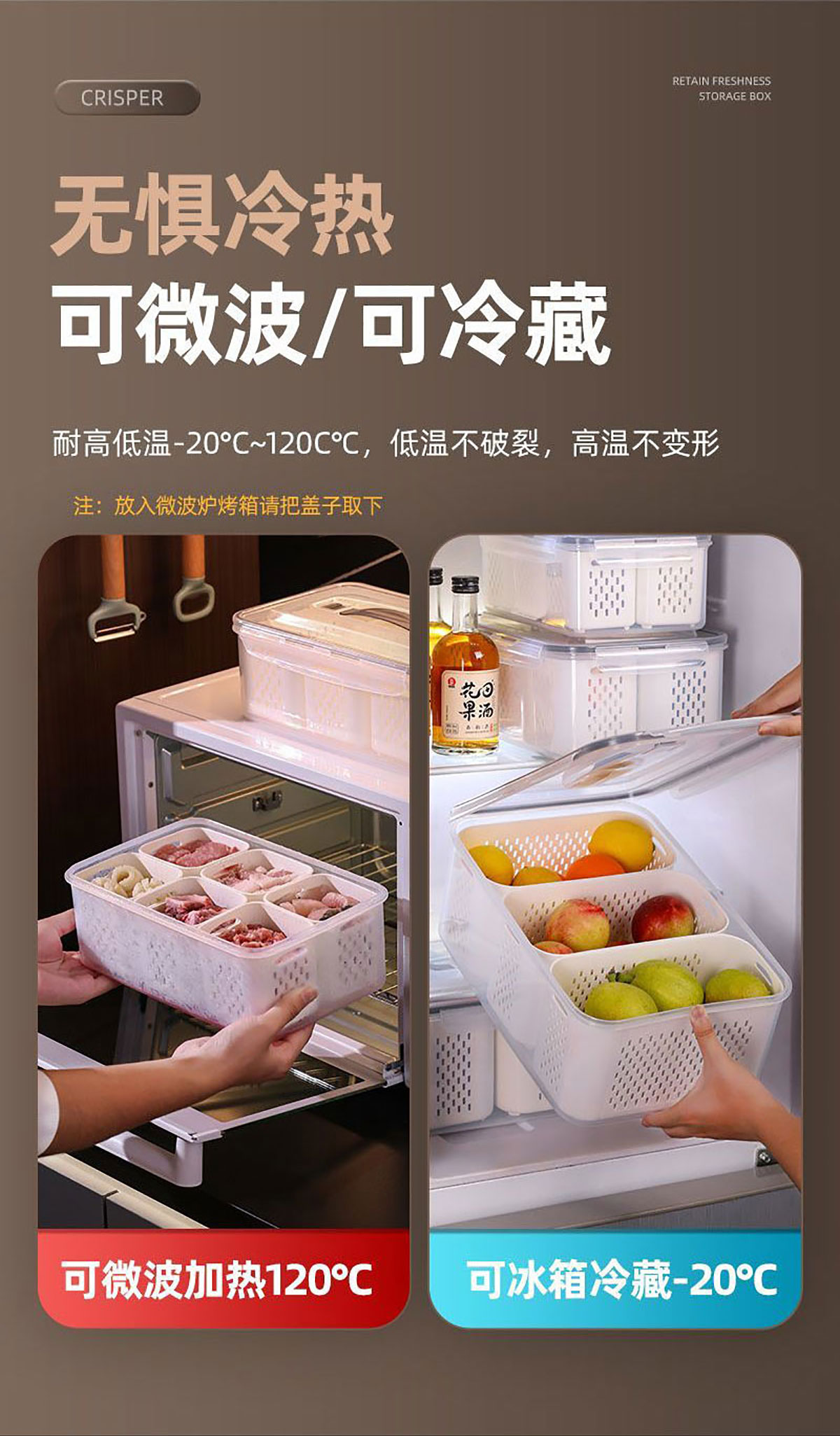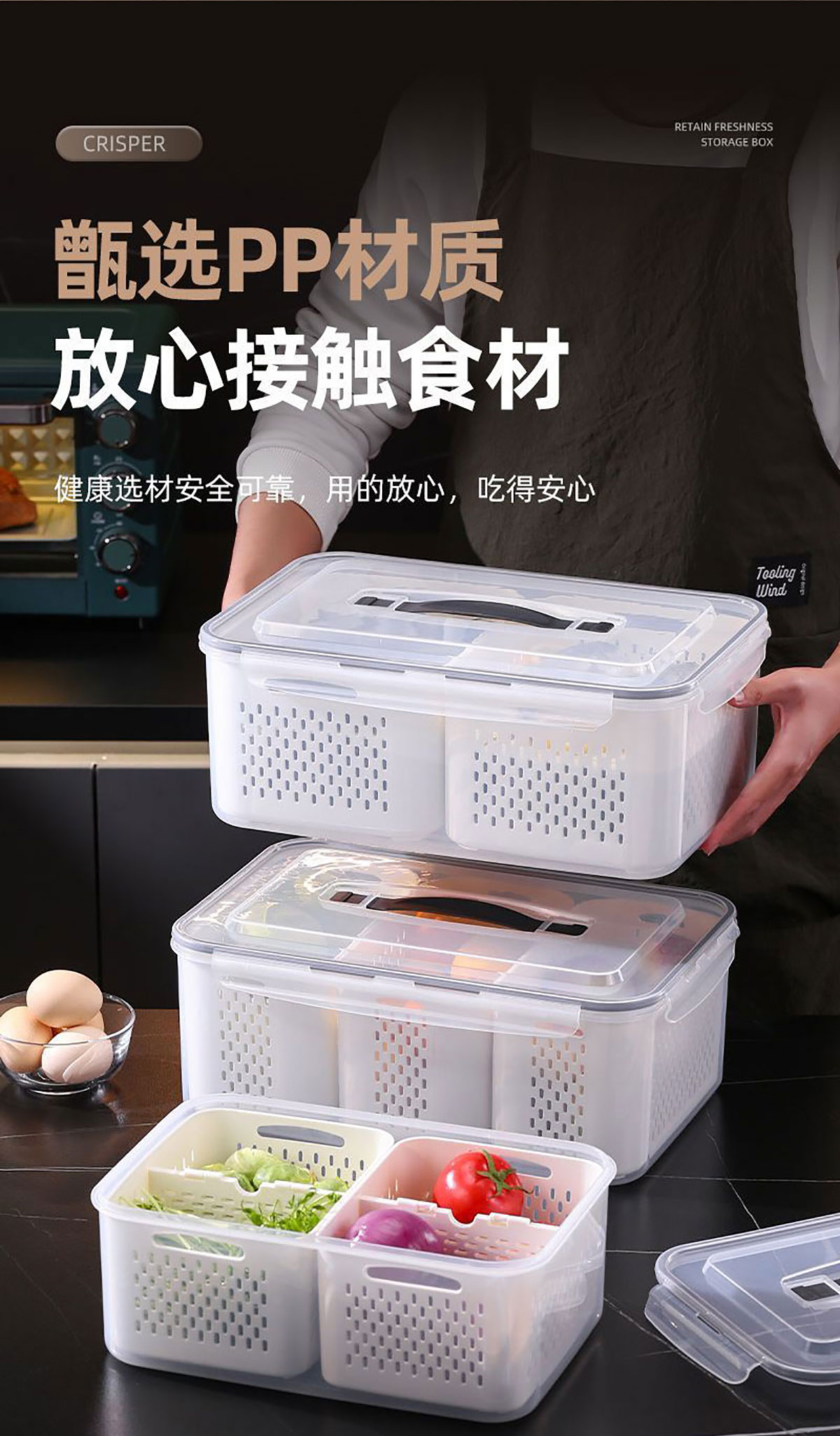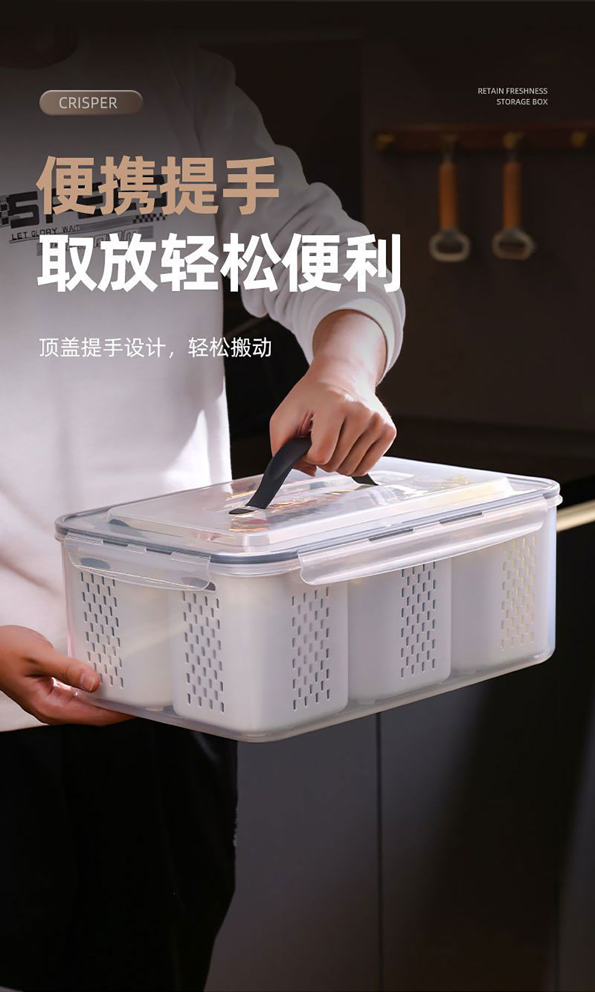 手提密封2格/3格/6格瀝水保鮮盒(小號(hào)/中號(hào)/大號(hào))