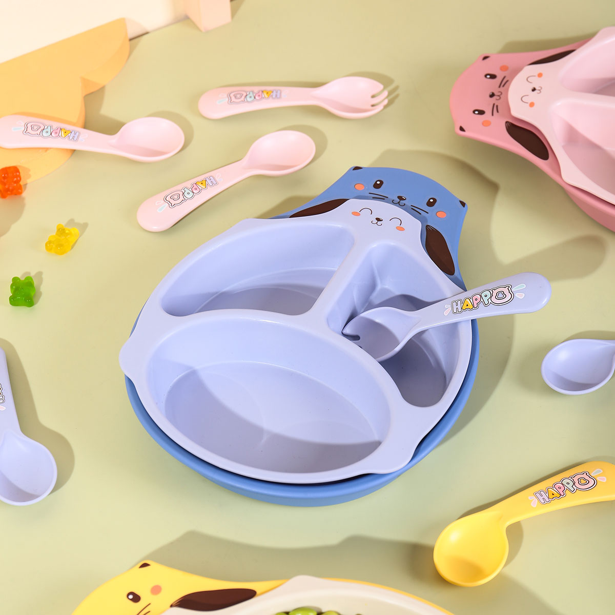HH-XJ8334:餐盤260*196*40mm/碗160*110*80mm/杯140*80*83mm/勺叉125mm