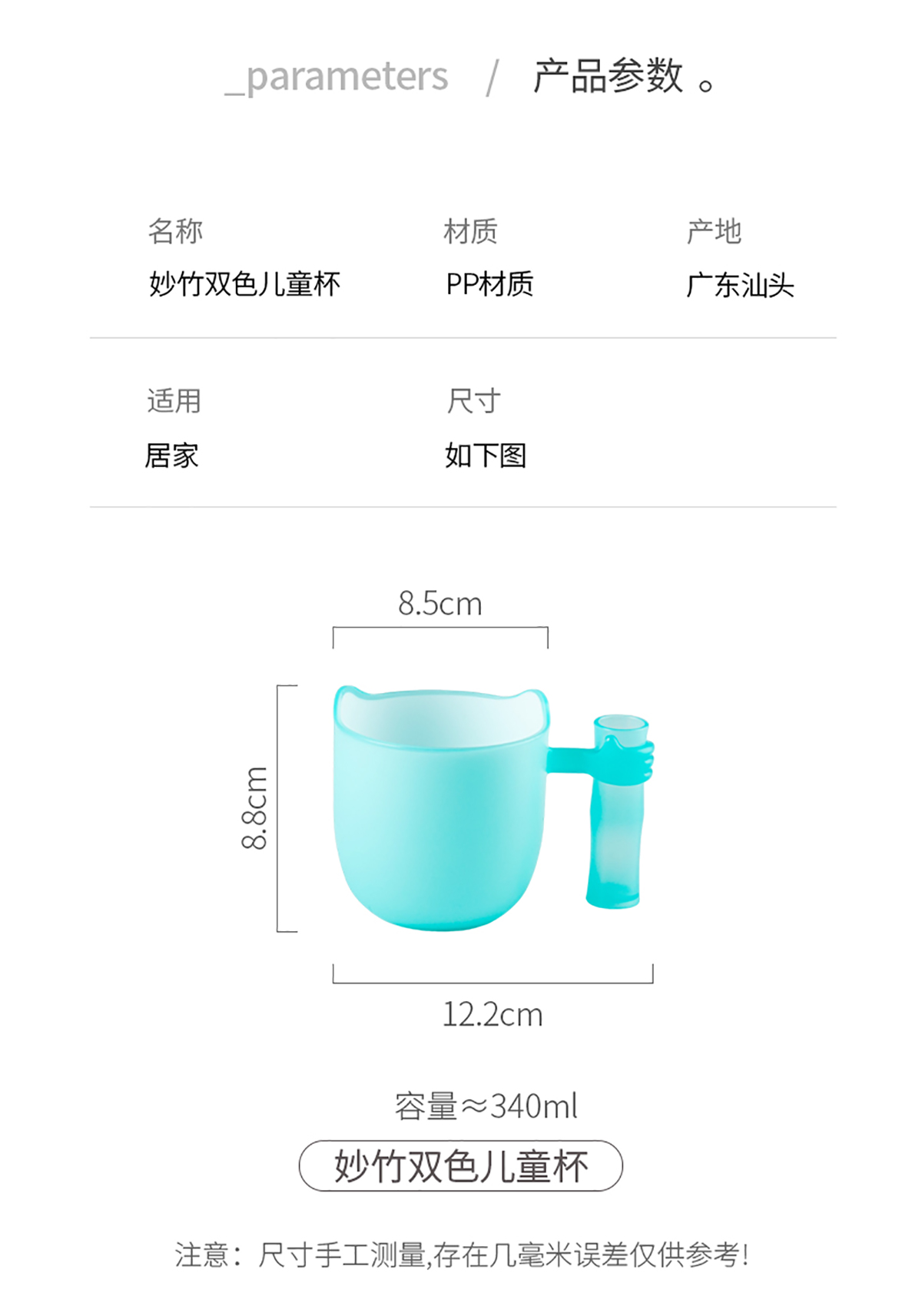 妙竹雙色兒童杯340ml