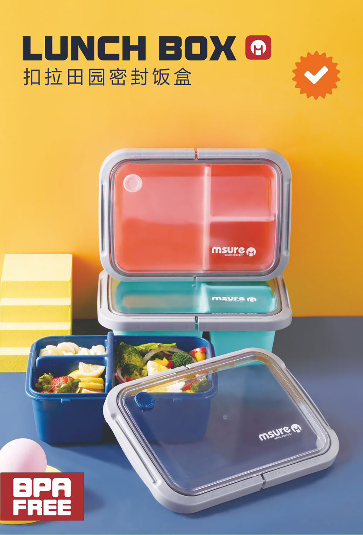 扣拉田園密封飯盒(三格)1.2L