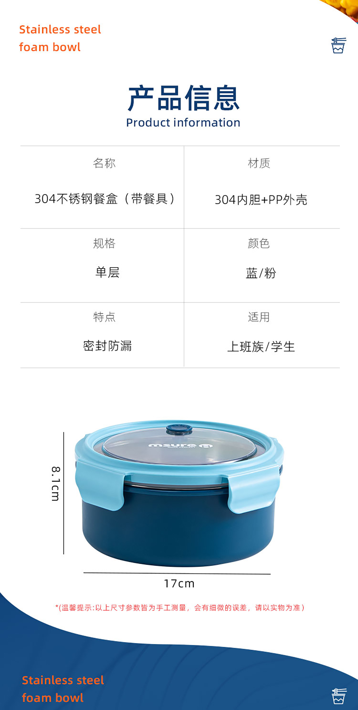 新食代不銹鋼飯盒1.1L(20年色款)