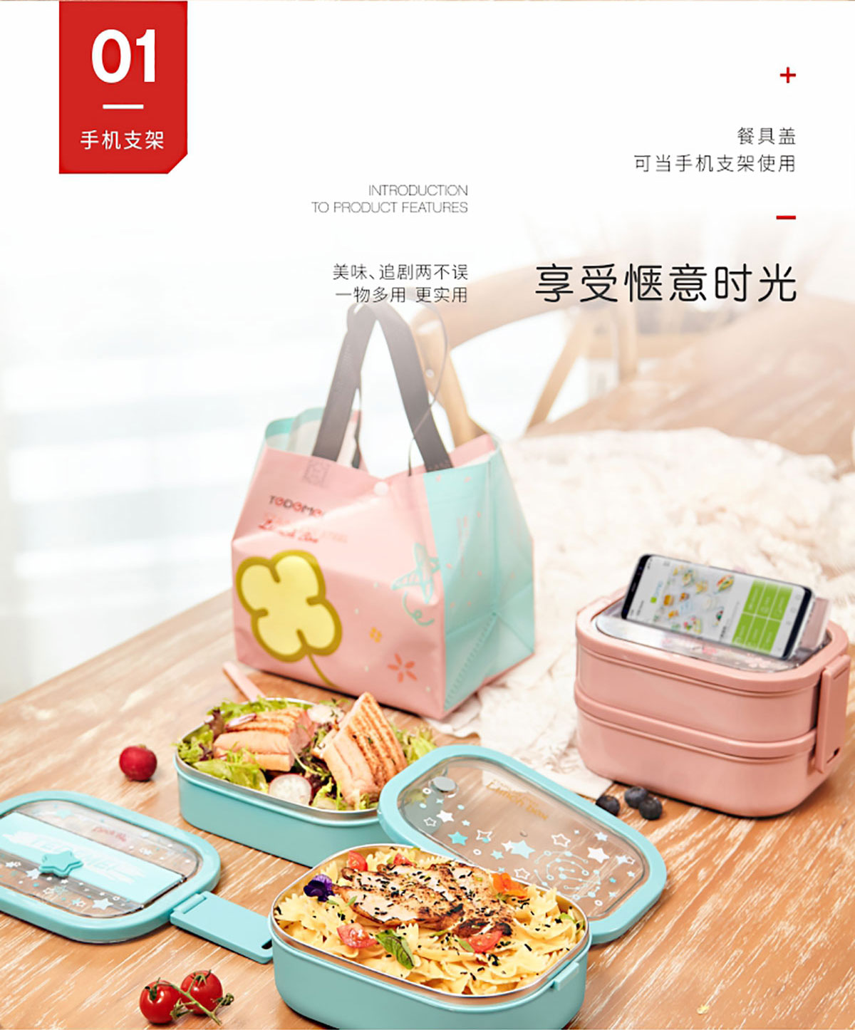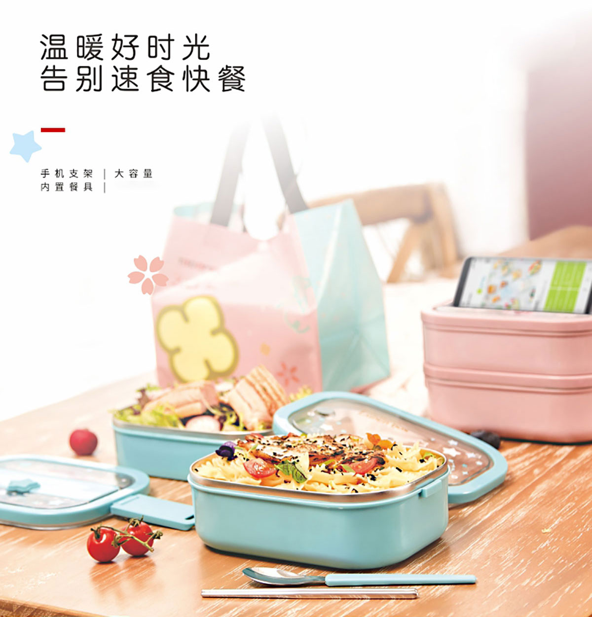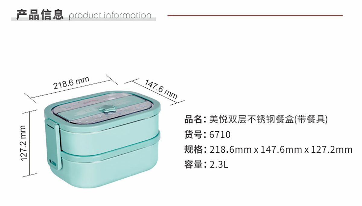 美悅雙層不銹鋼餐盒(帶餐具/附送餐盒袋)2300ml