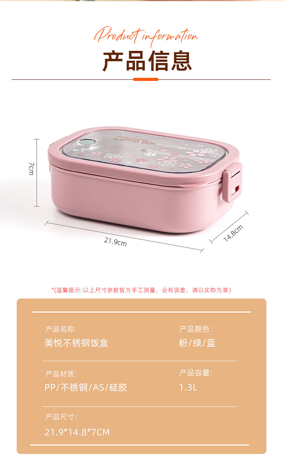 美悅單層不銹鋼餐盒1300ml