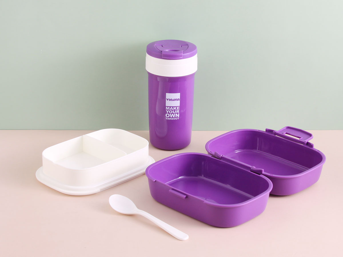 旋彩雙層餐盒(長方形)+隨手杯套裝1L+0.5L