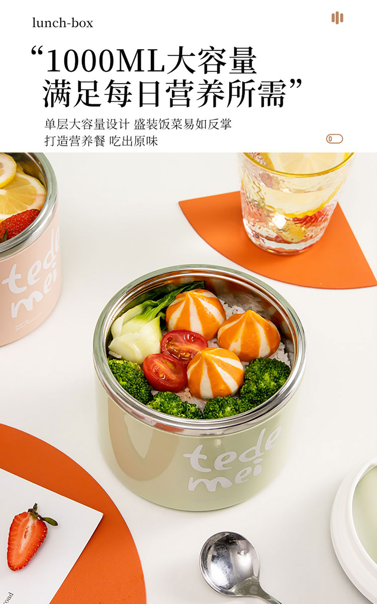單層便攜保溫飯盒1000ml