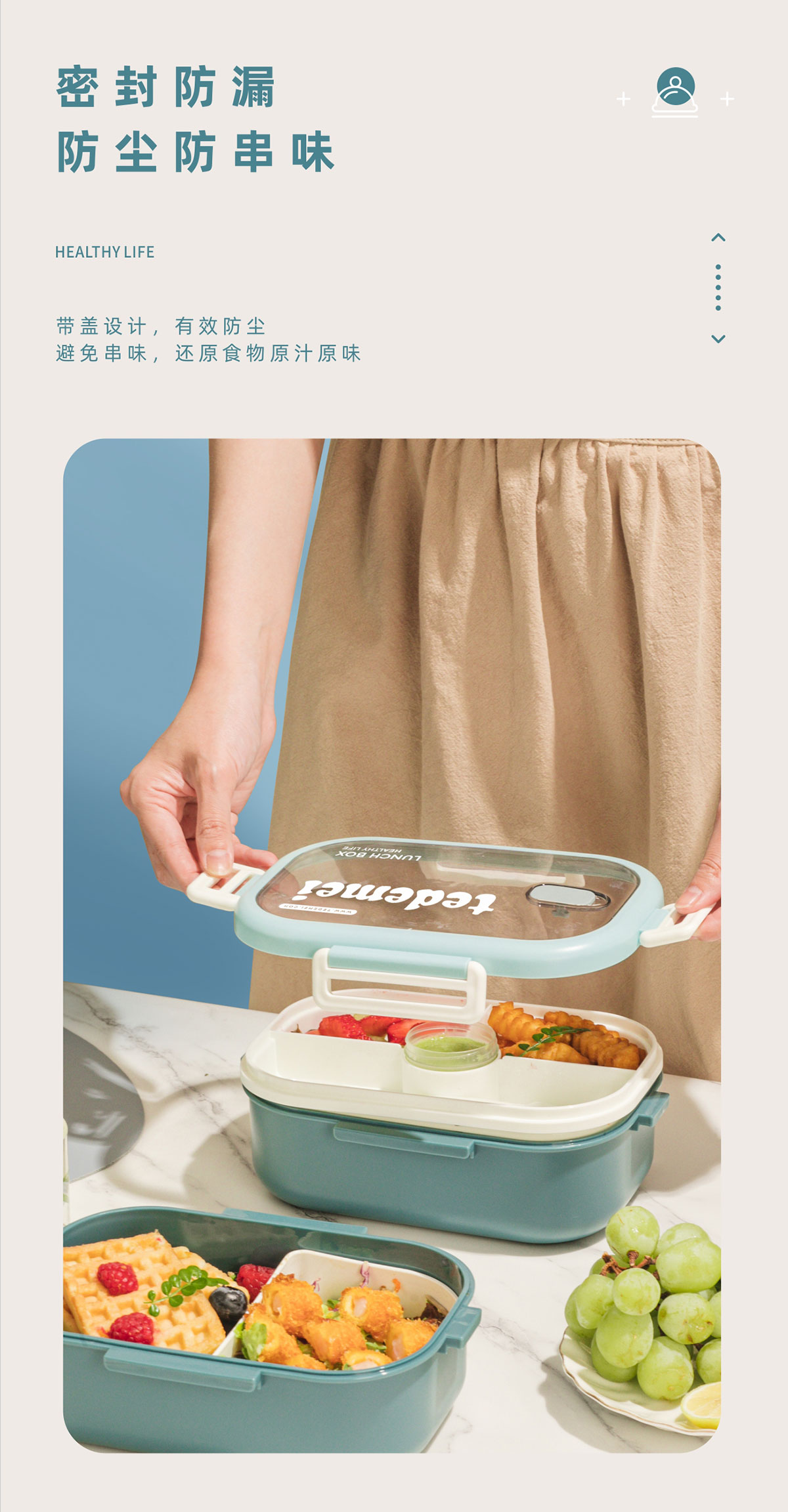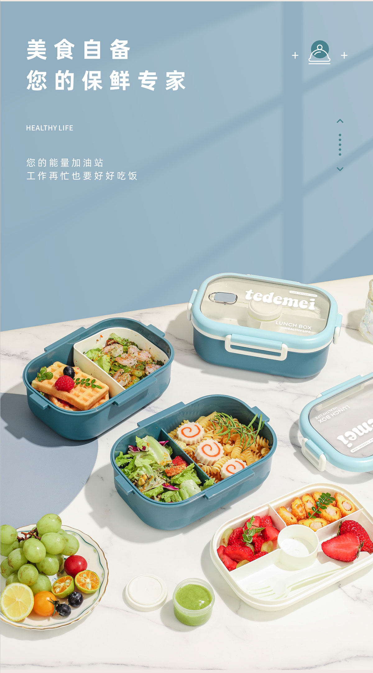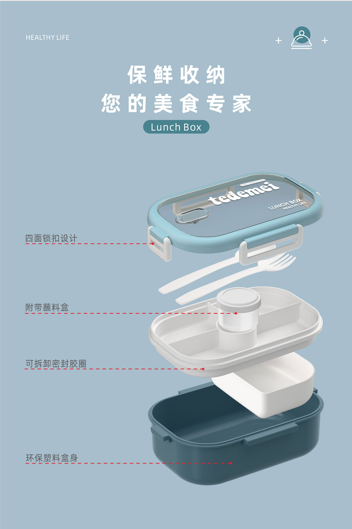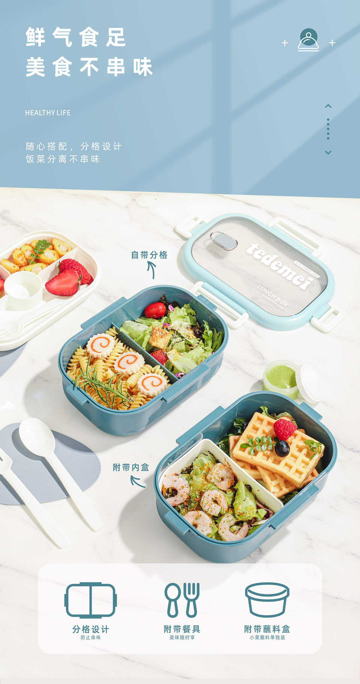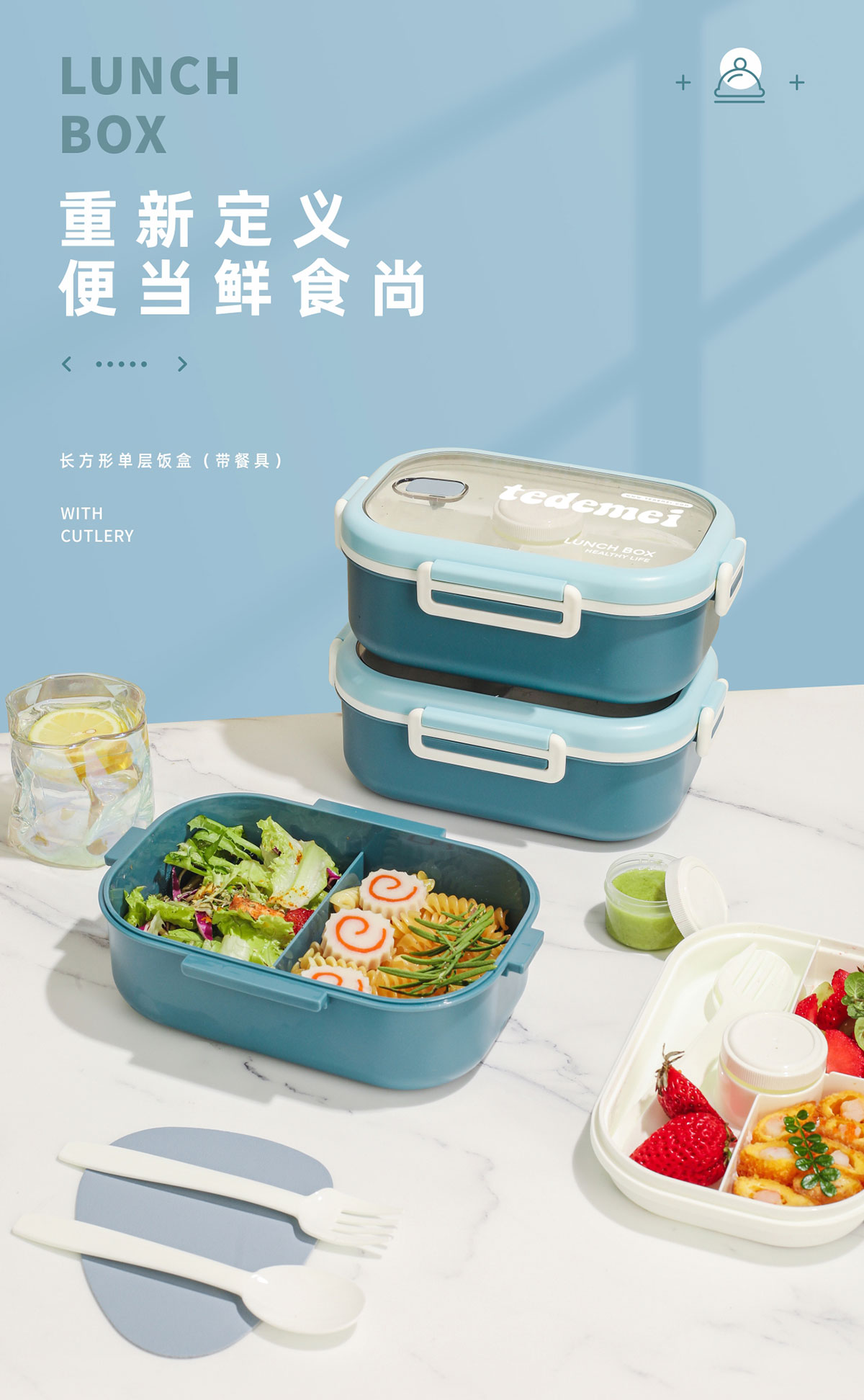 長方形單層飯盒(帶餐具)1.1L+500ml+330ml/1.1L+500ml