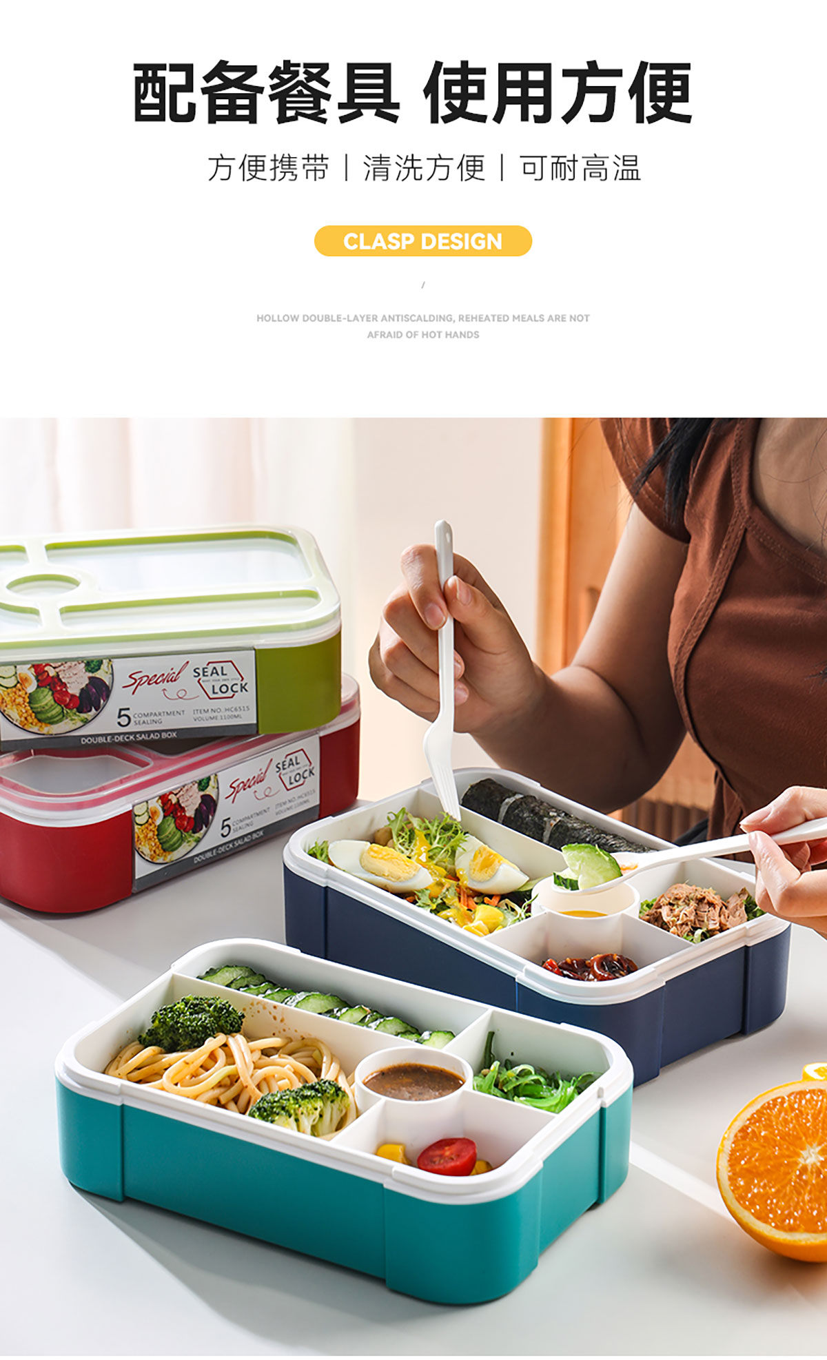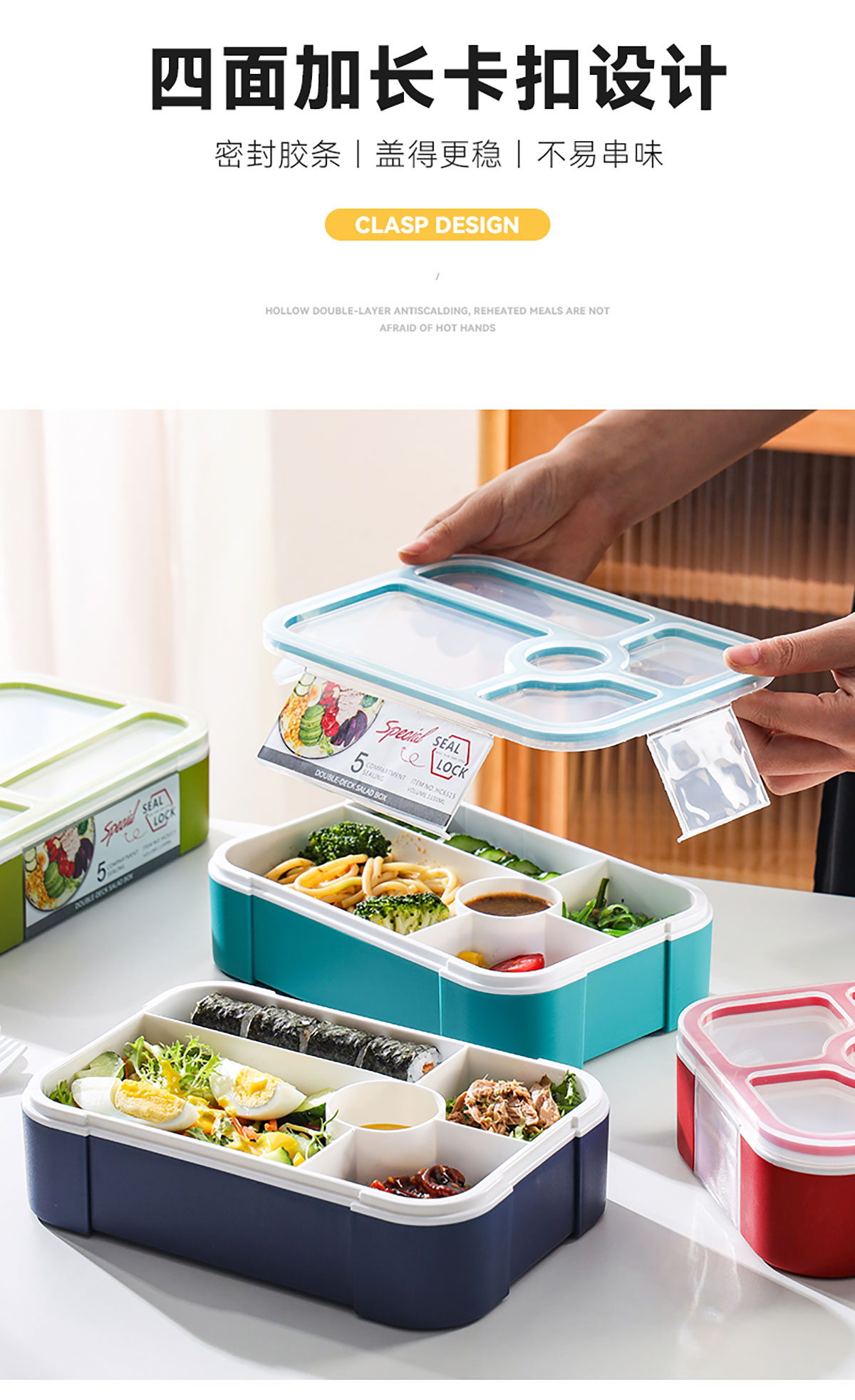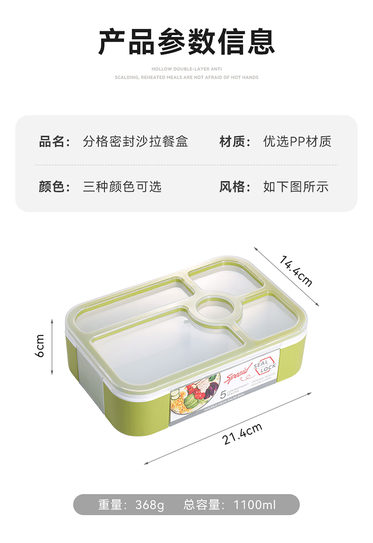 沙拉餐盒1100ml(五格分格密封)