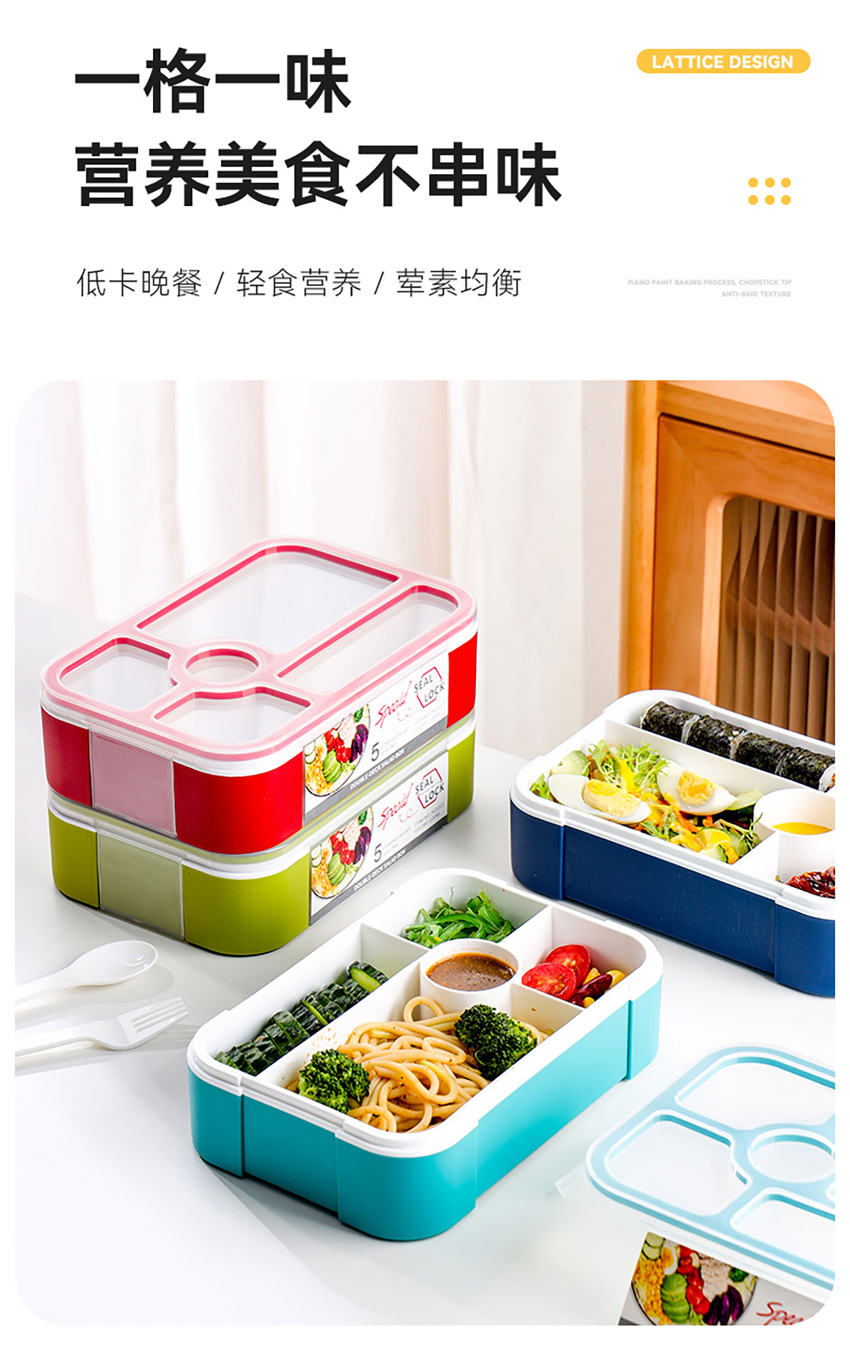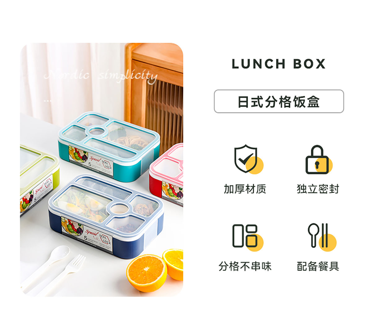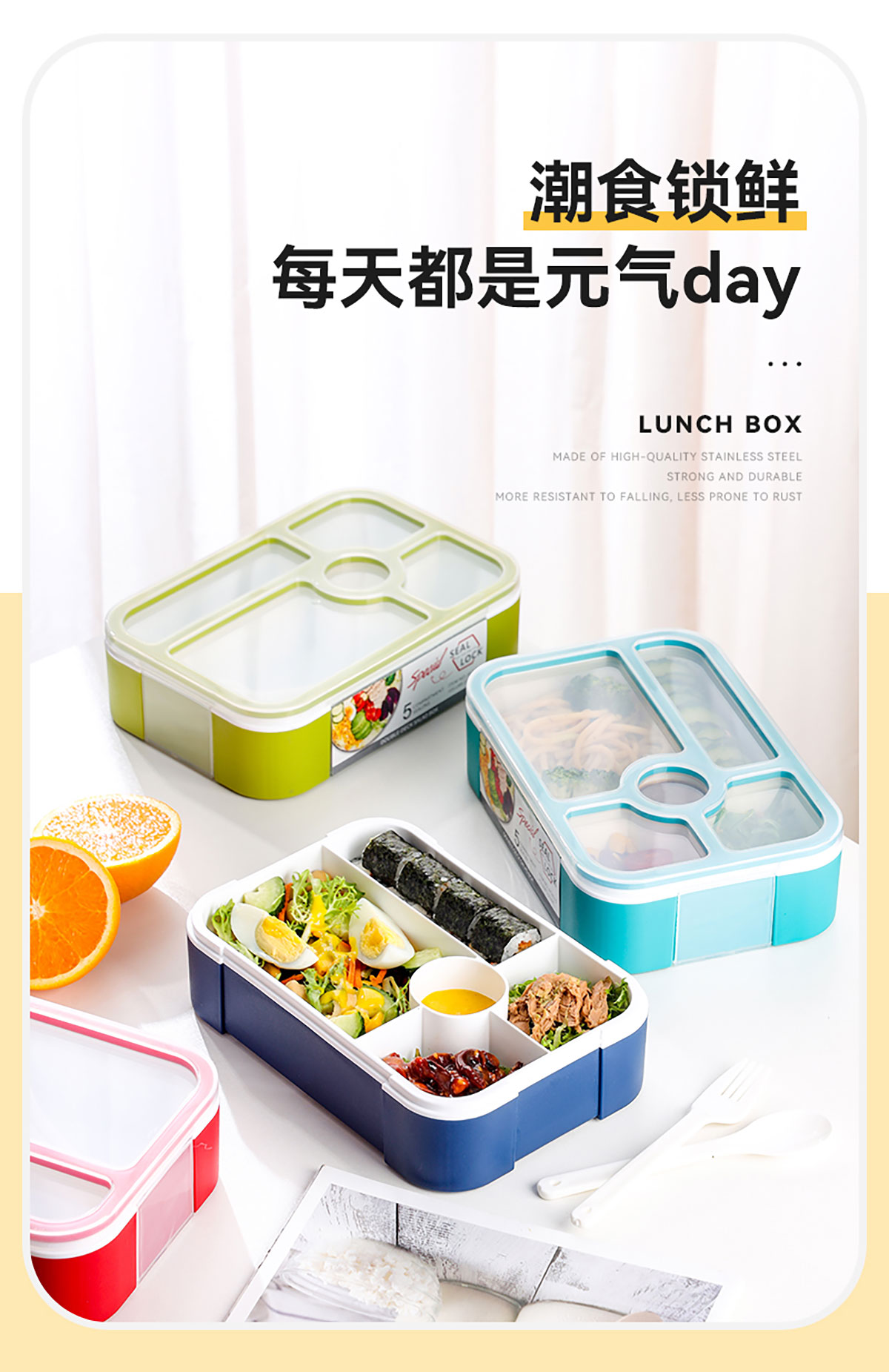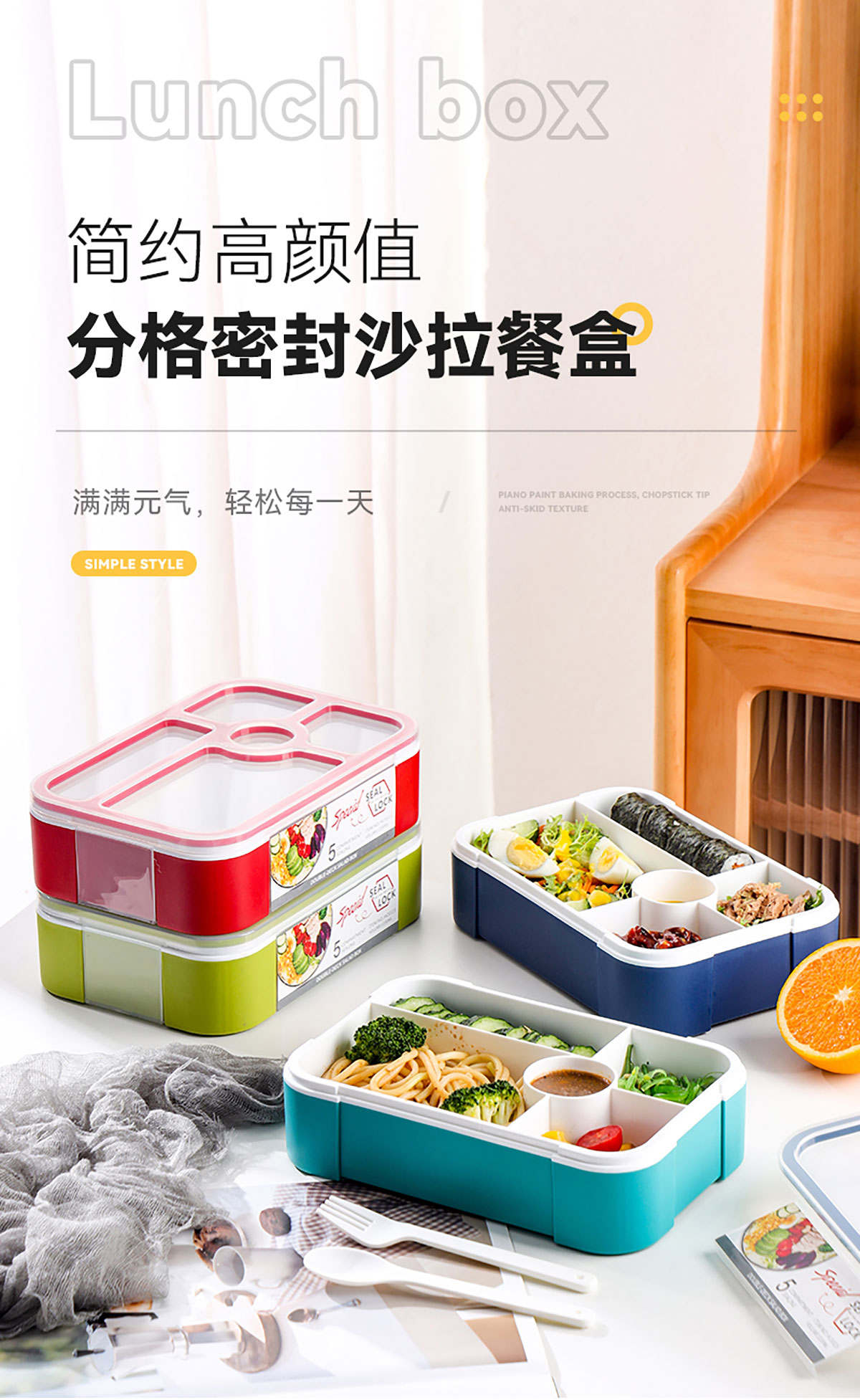 沙拉餐盒1100ml(五格分格密封)