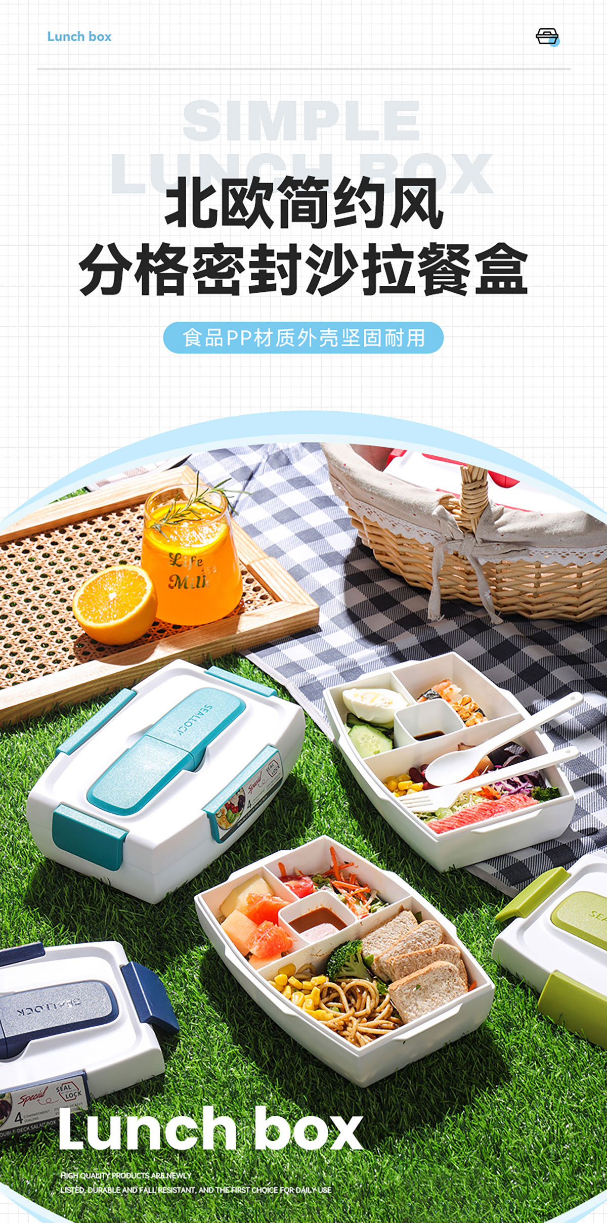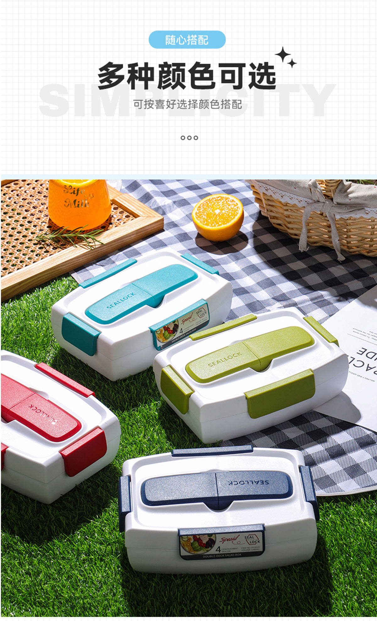 沙拉餐盒1100ml(四格分格密封)