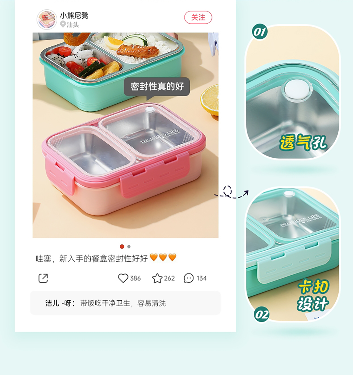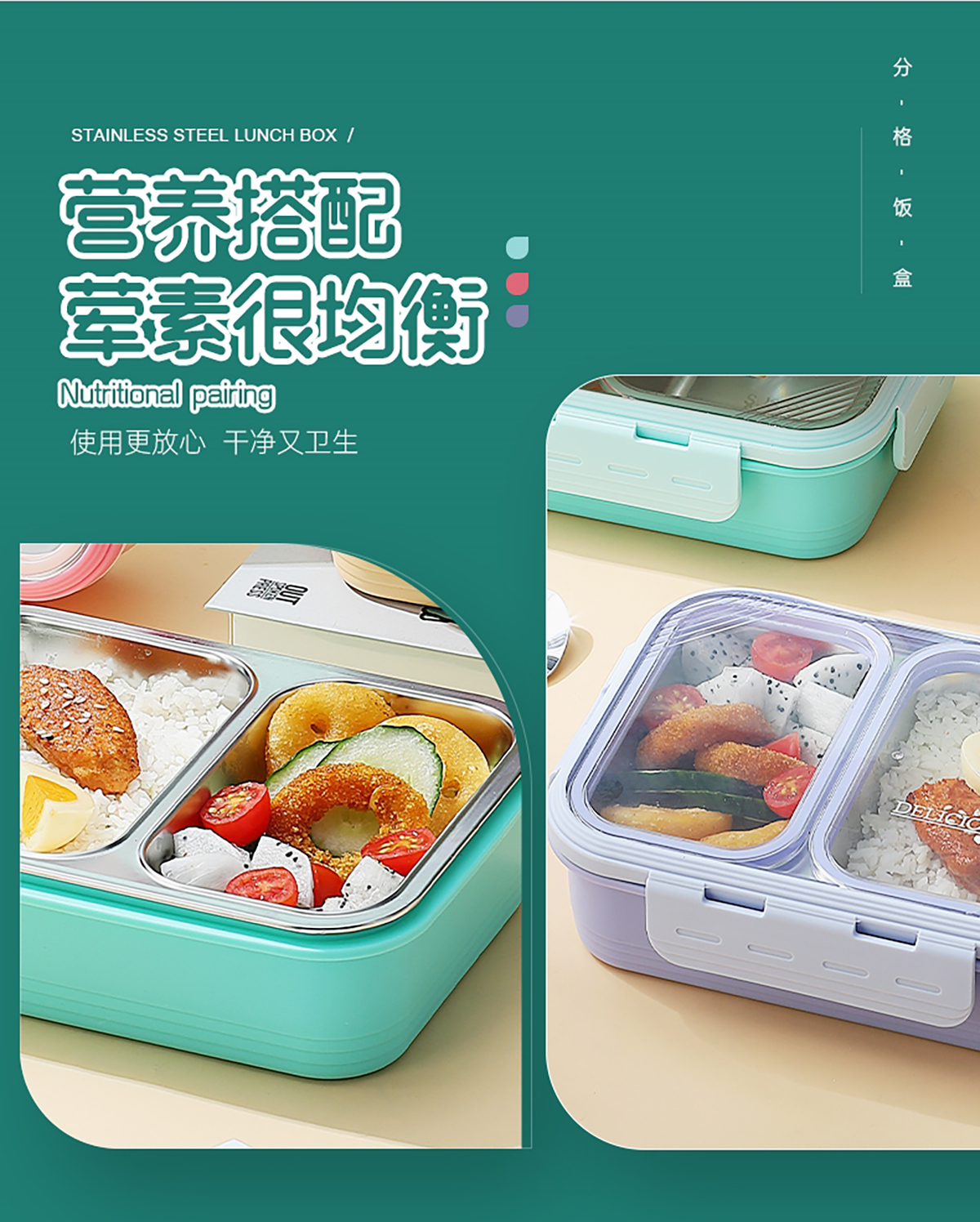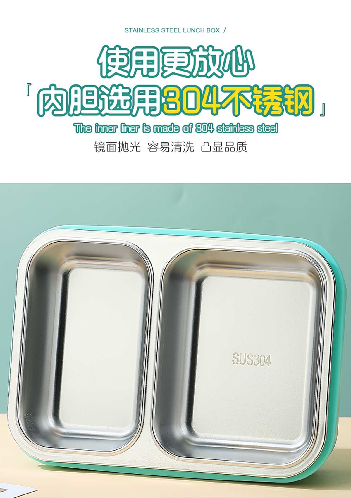 2格不串味不銹鋼餐盒700ml