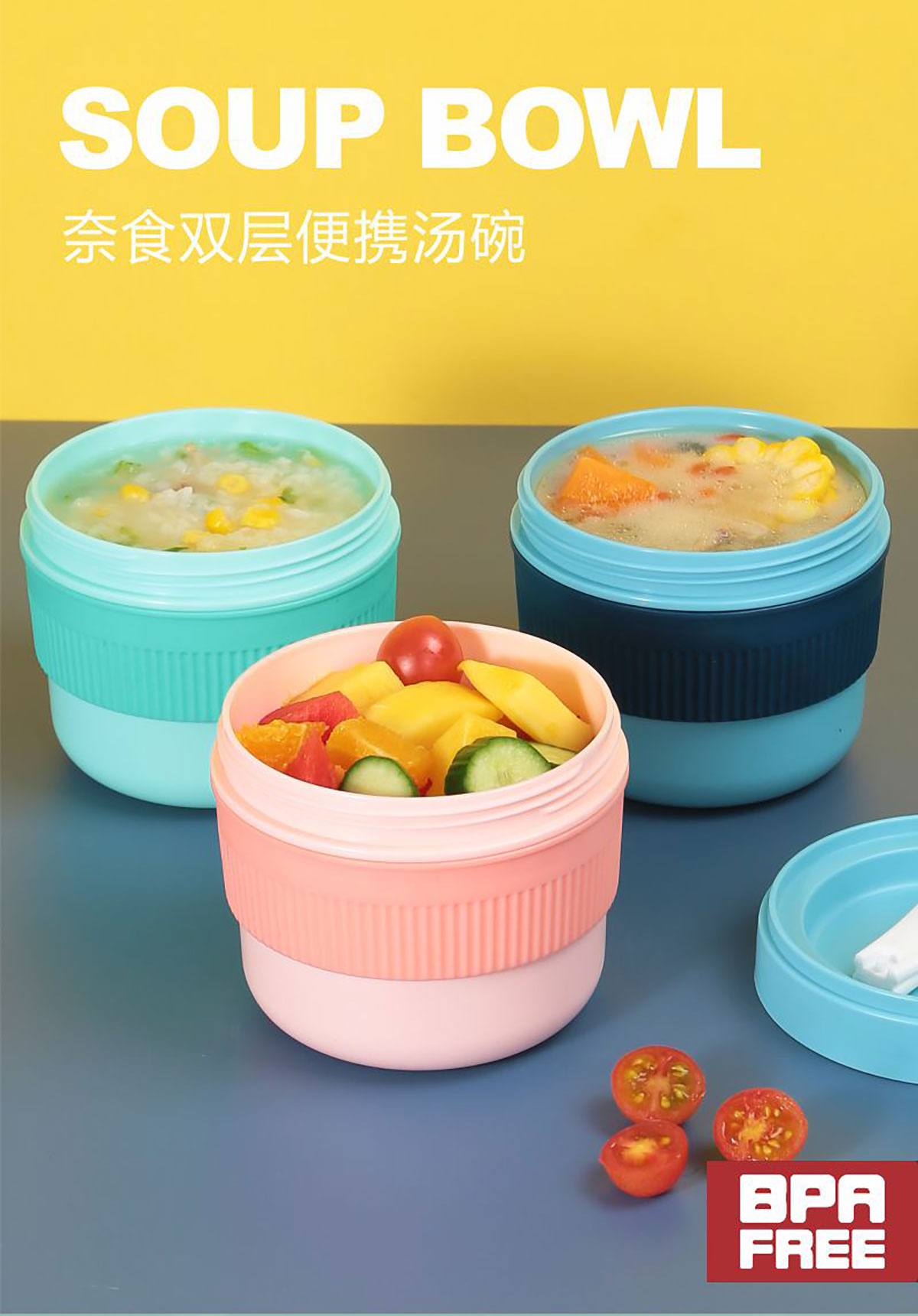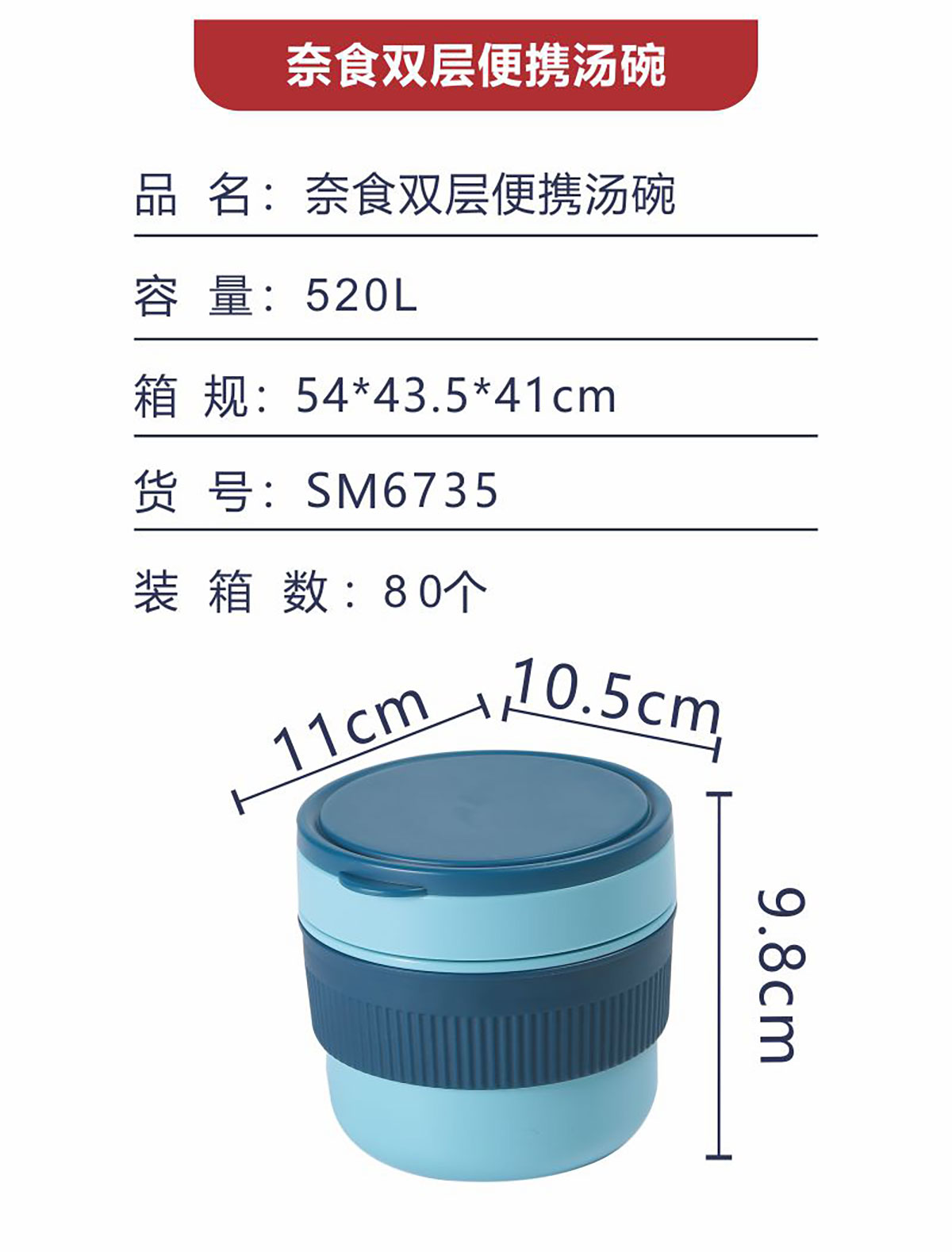 奈食雙層便攜湯碗520ml