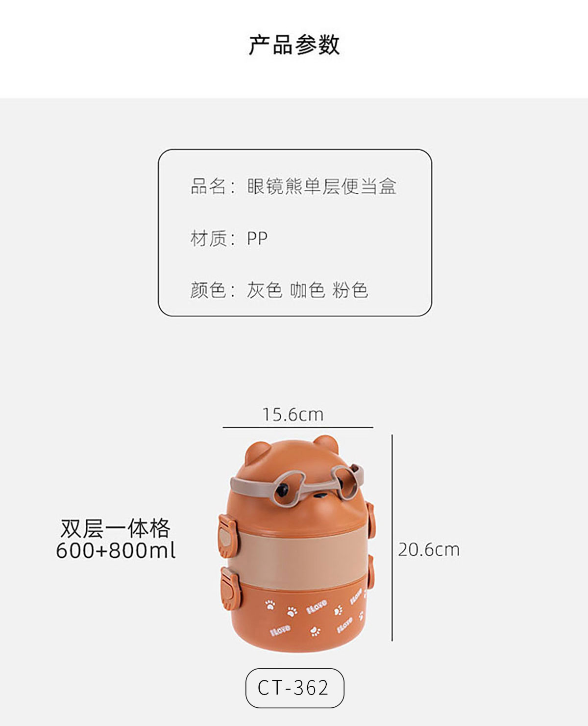 Size: CT-362(雙層):156*206mm/600+800ml
