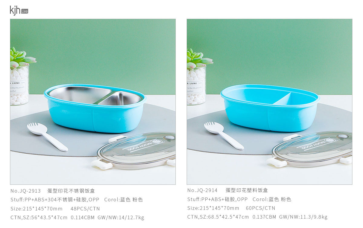 蛋型印花不銹鋼/塑料飯盒