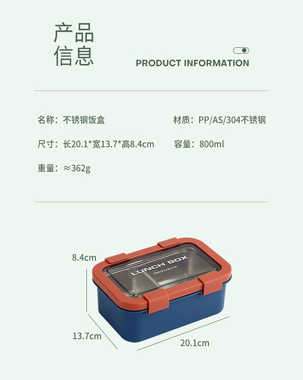不銹鋼二格飯盒800ml