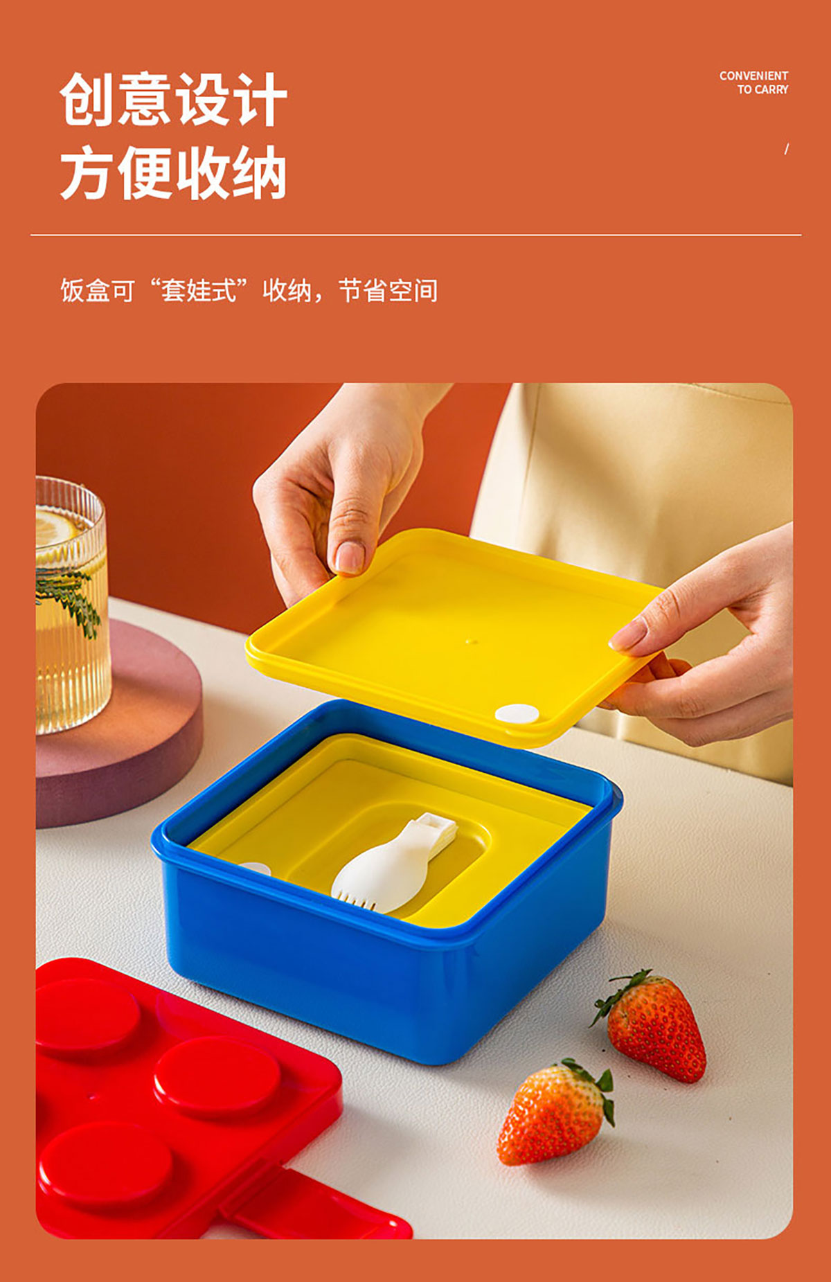 積木雙層方形飯盒1500ml