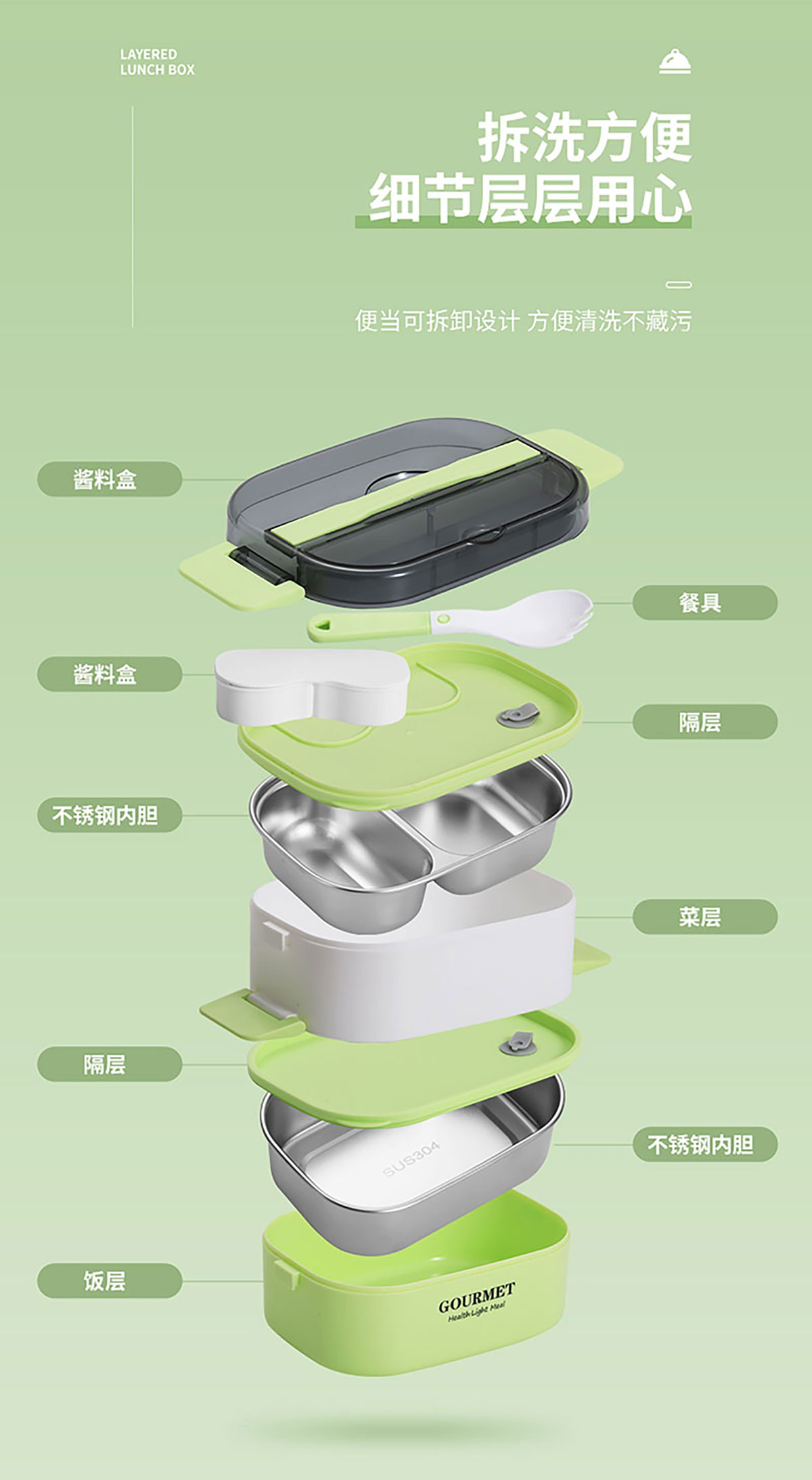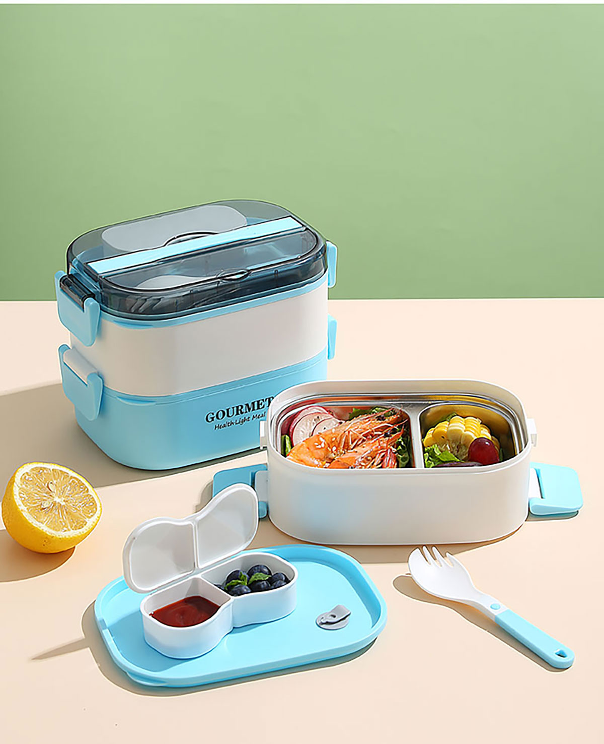 SSY-A52B(雙層不銹鋼):180*125*130mm/550+450ml