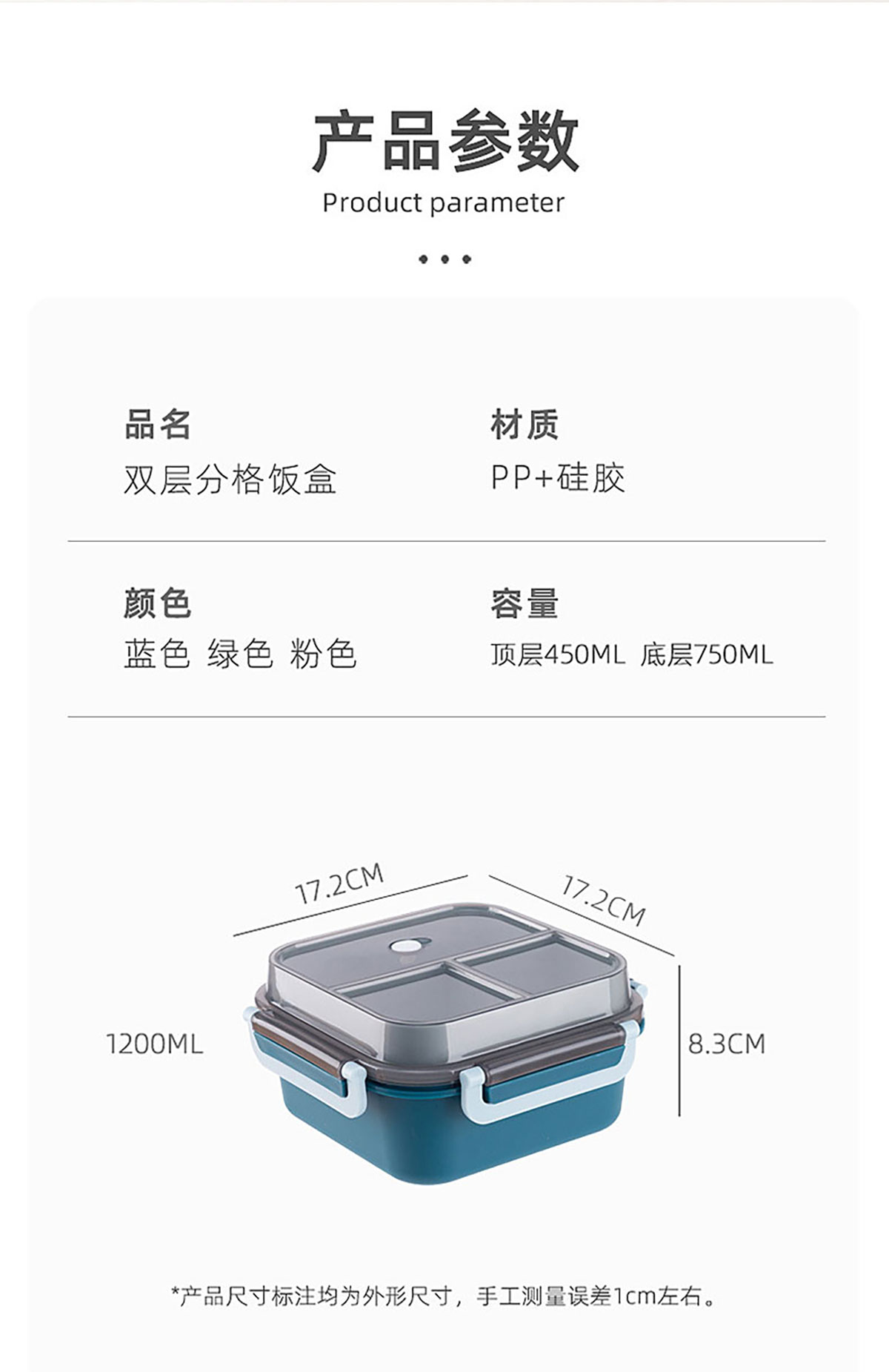 Size: 172*172*83mm/1200ml