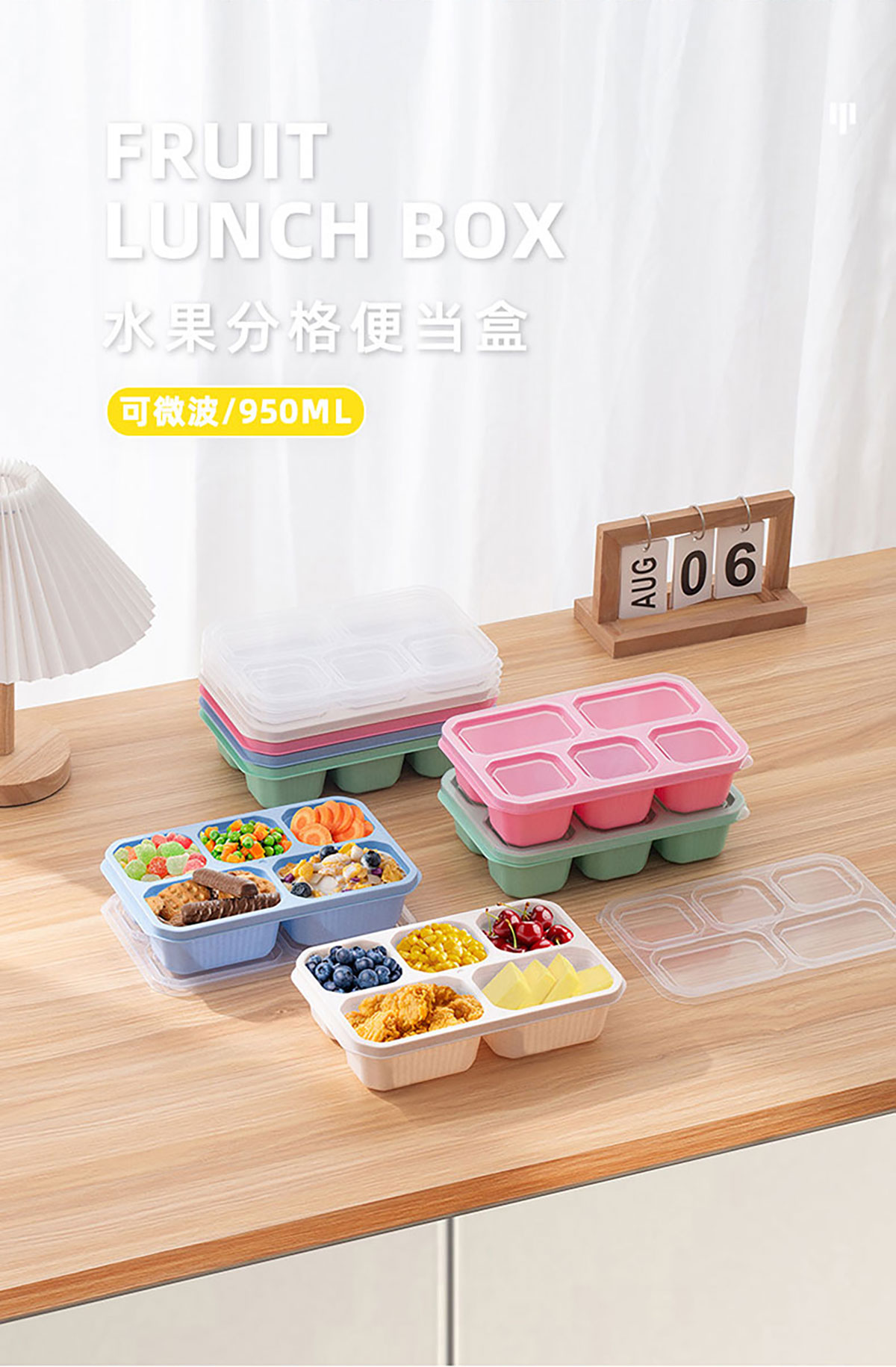簡約五分格飯盒950ml