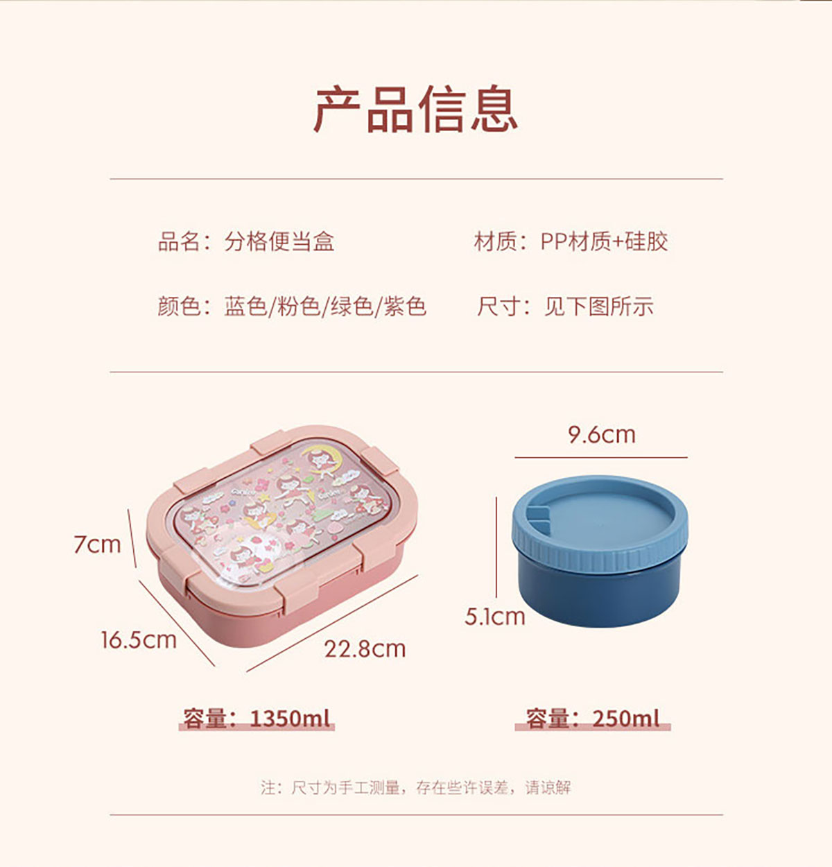 Size: 飯盒:228*165*70mm/1350ml 湯杯:?96*51mm/250ml