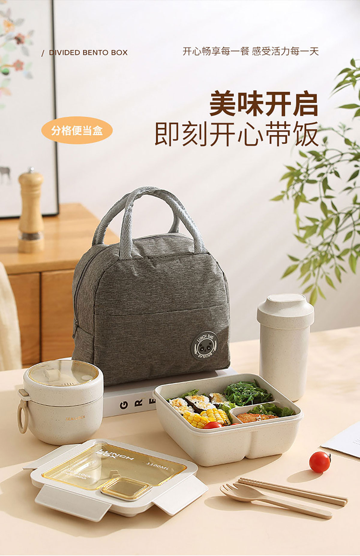 簡麥便當盒飯盒/套裝(飯盒+水杯/飯盒+水杯+灰色餐袋/飯盒+燕麥杯+灰色餐袋)