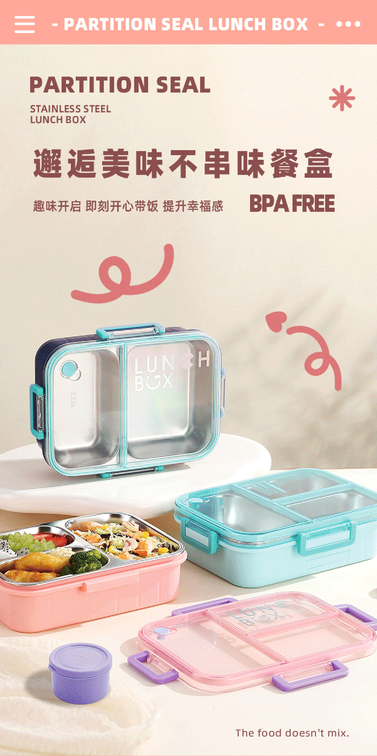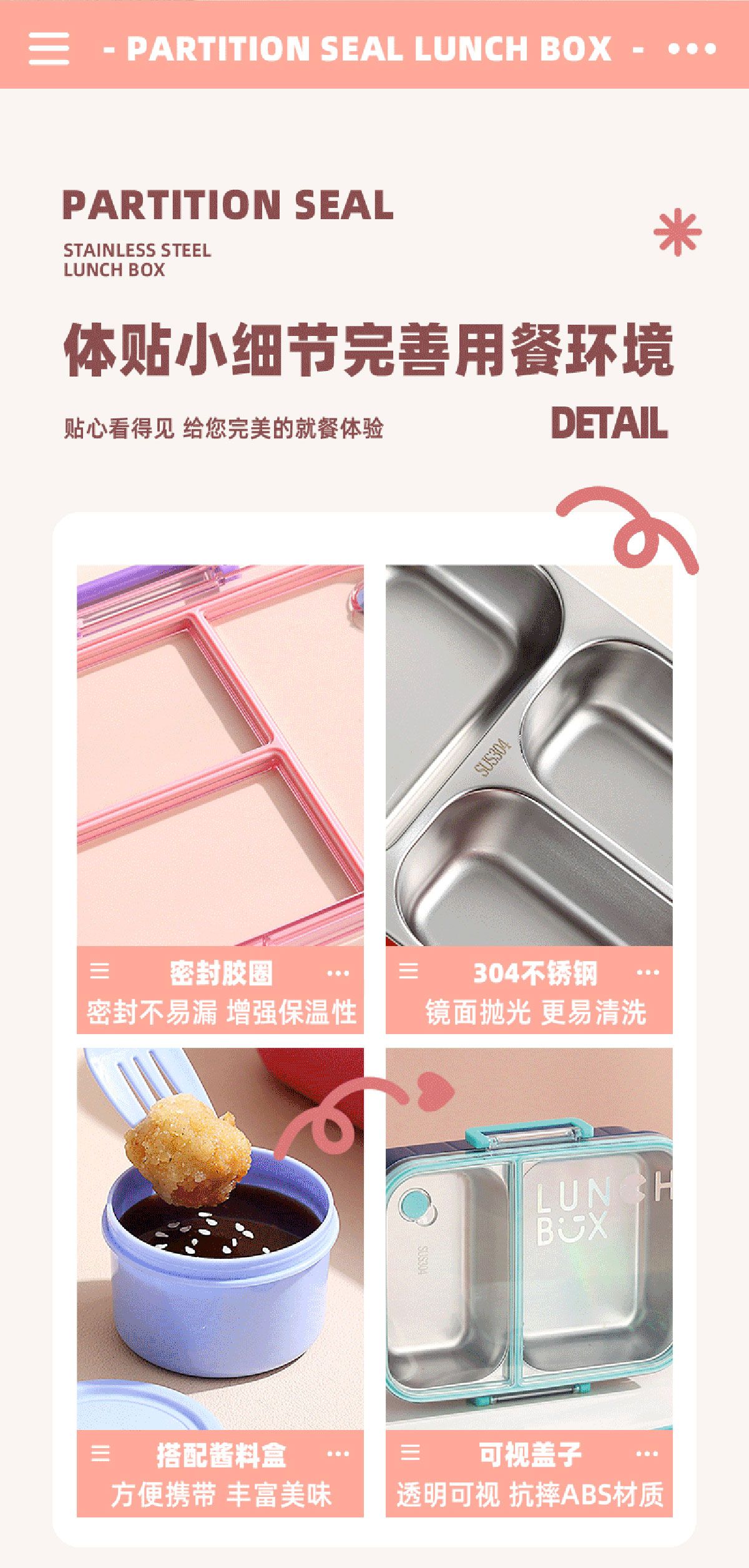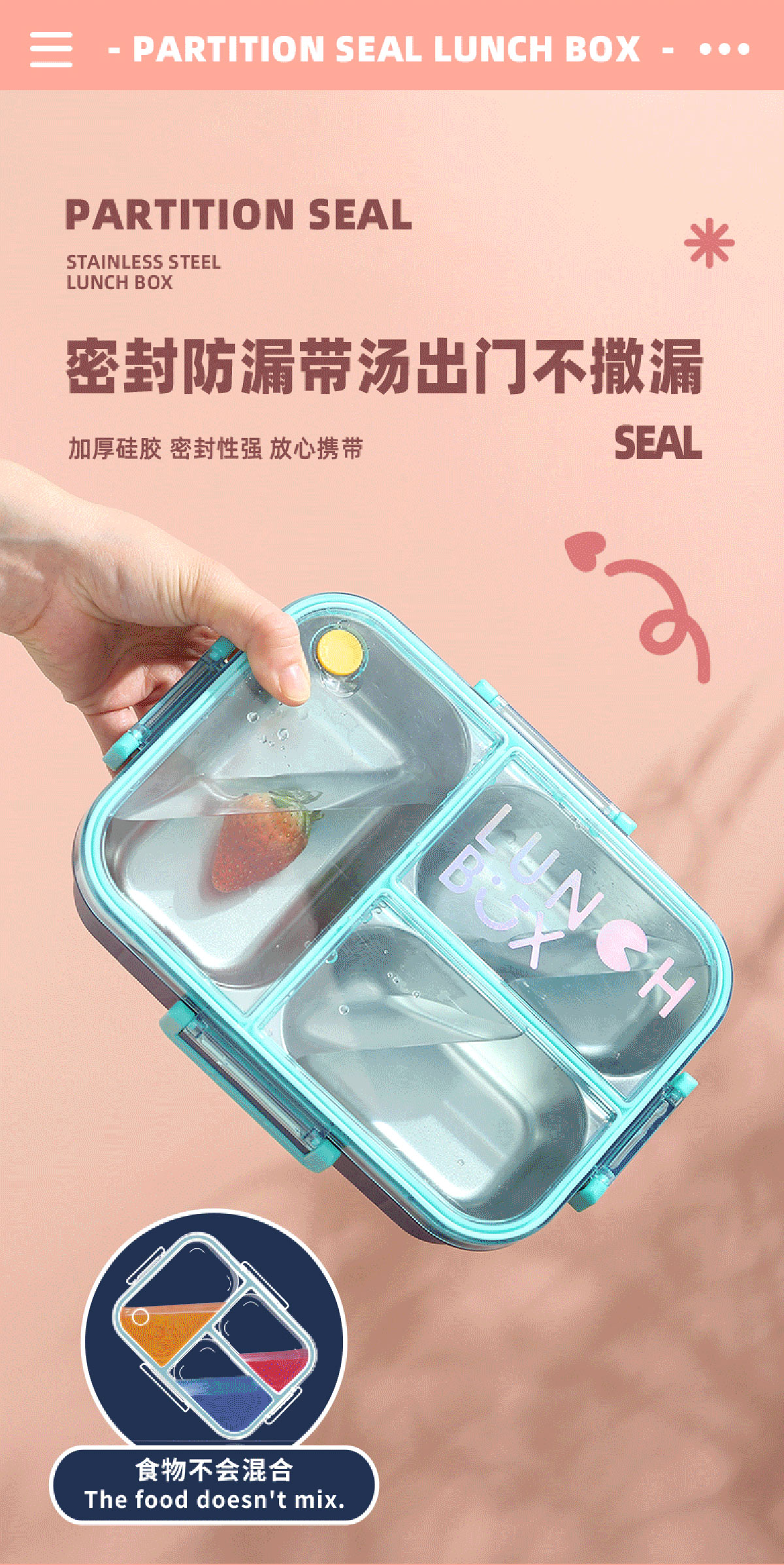 AQX-2621:226*168*65mm/不銹鋼3格750ml+醬料杯80ml