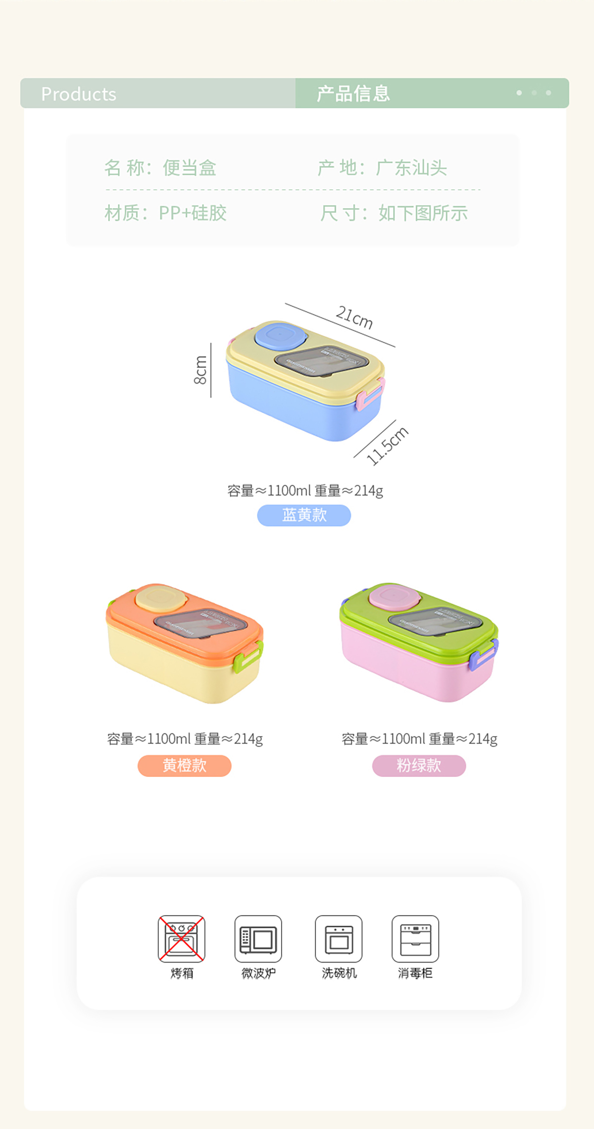 Size: 210*115*80mm/1100ML