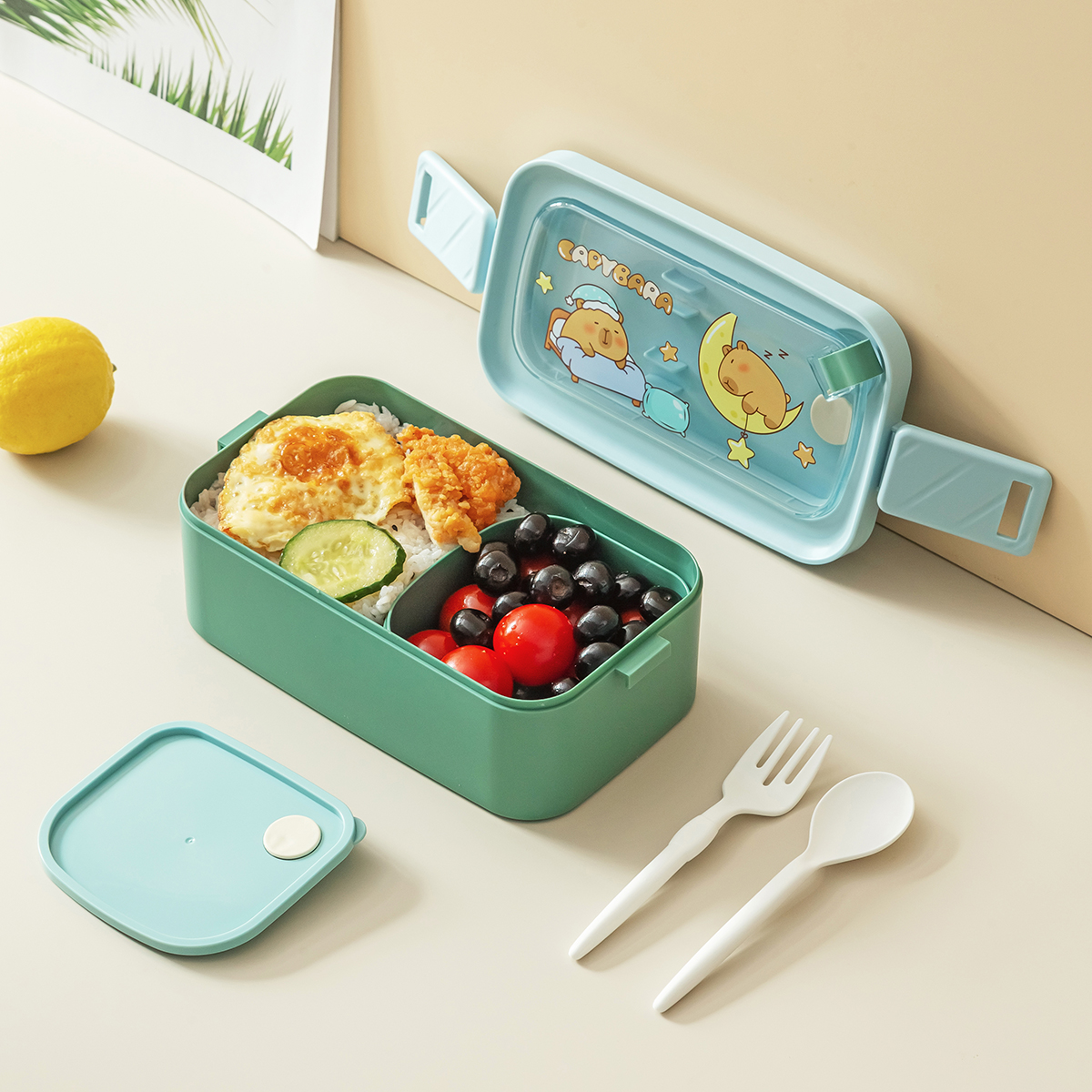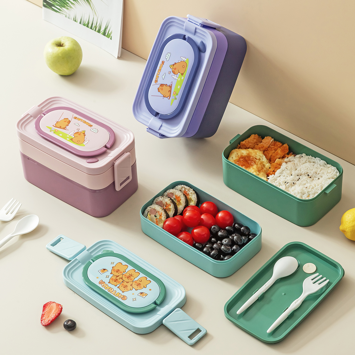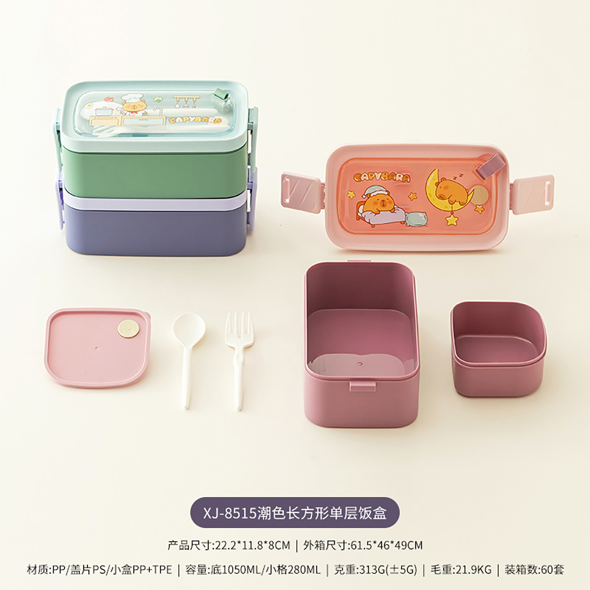 潮色長方形單層/雙層提式飯盒