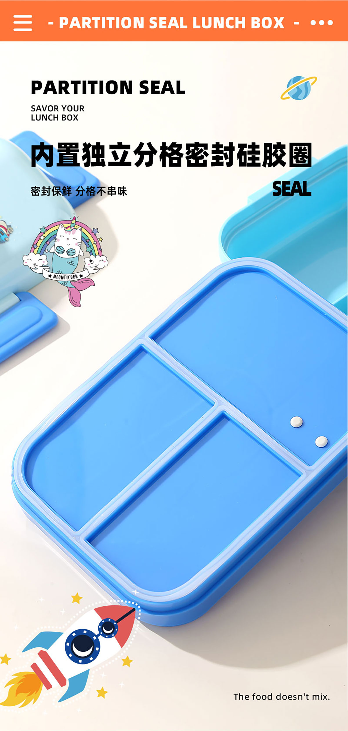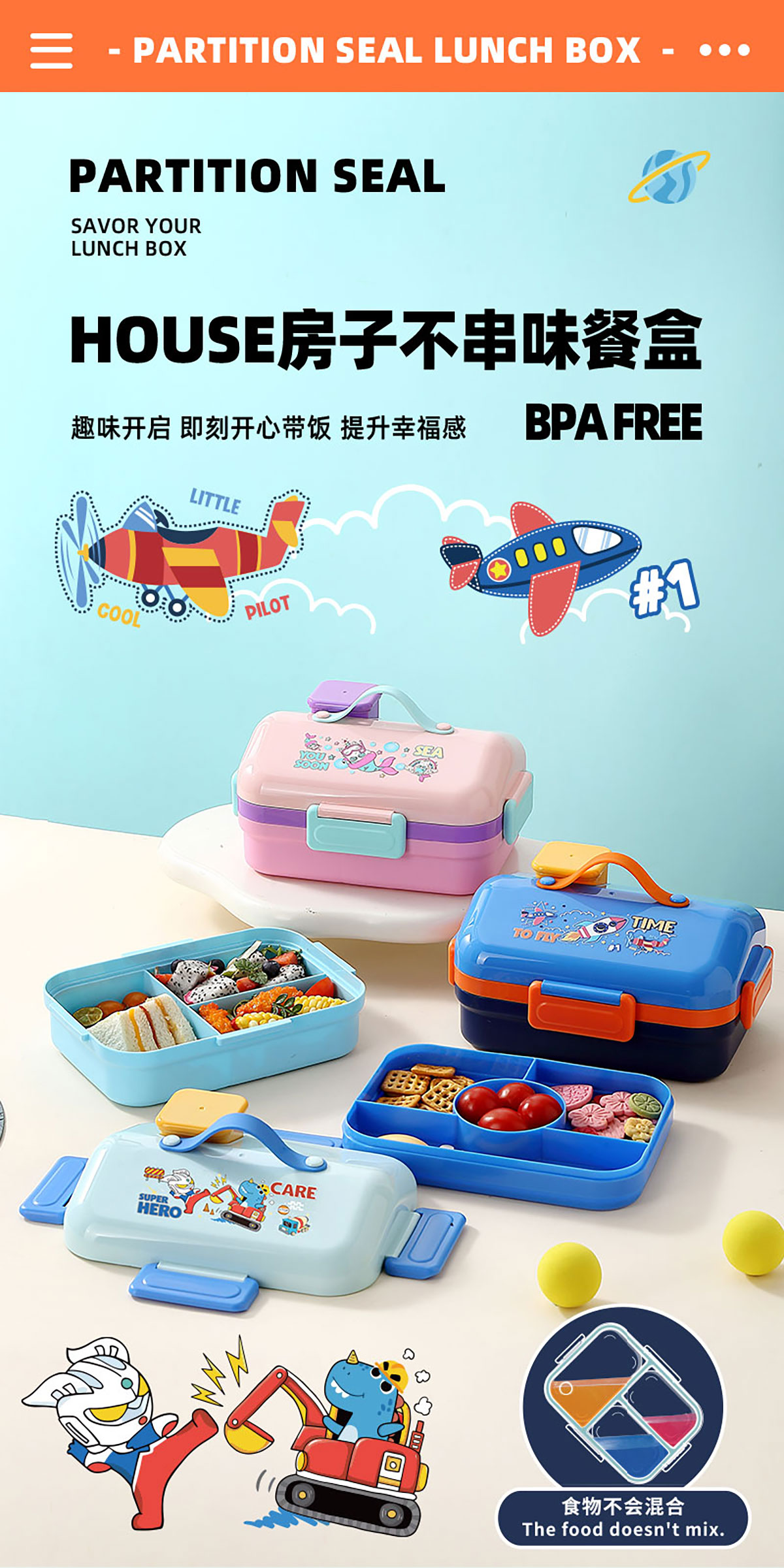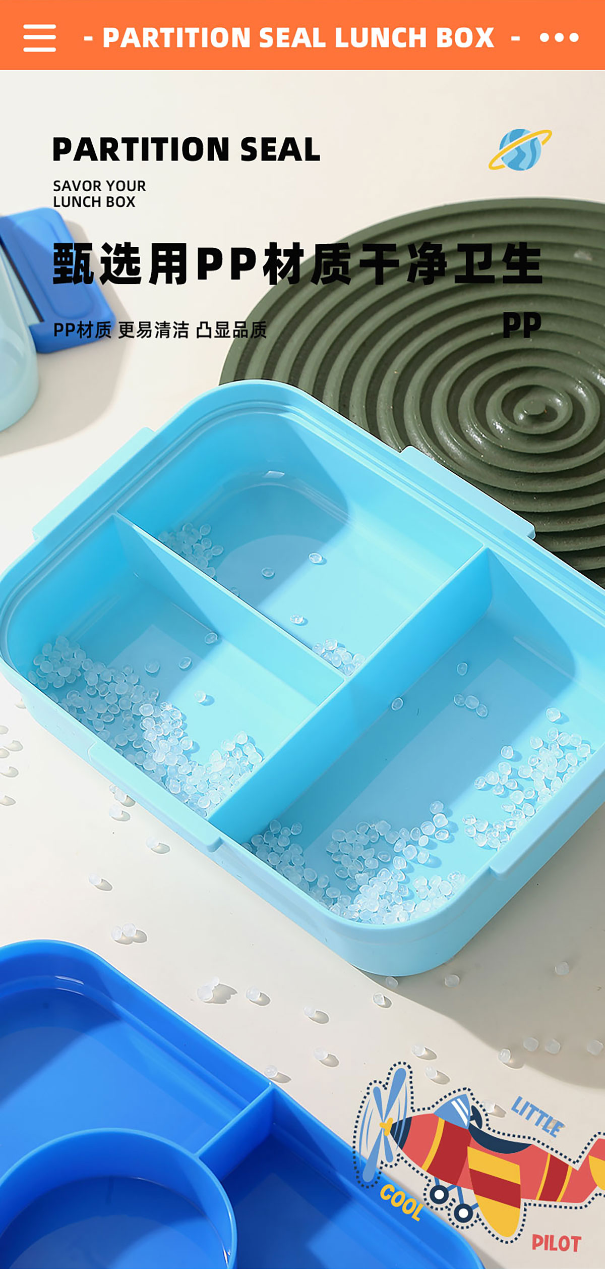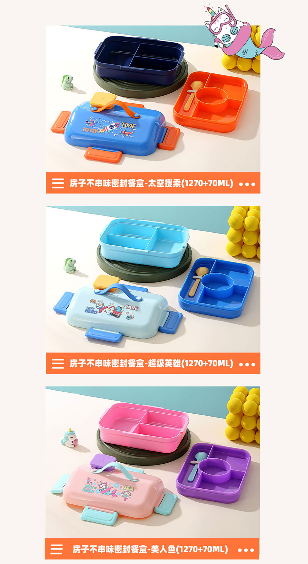 HOUSE房子不串味餐盒(長(zhǎng)方形塑料3格1270ml+碗70ml+PP勺)