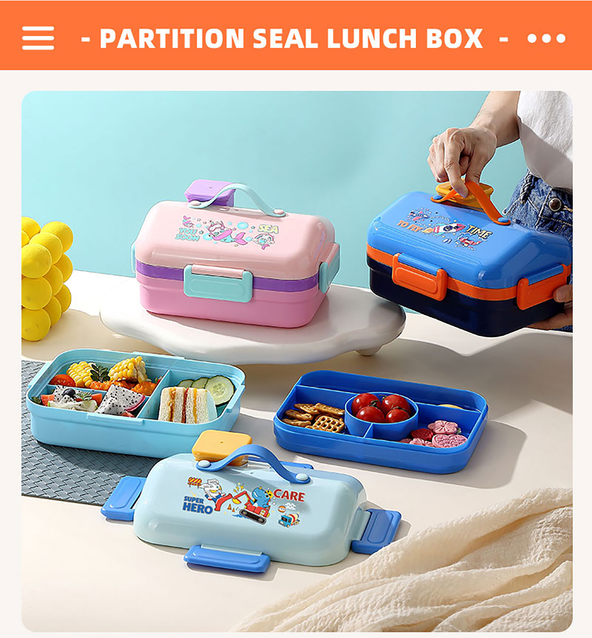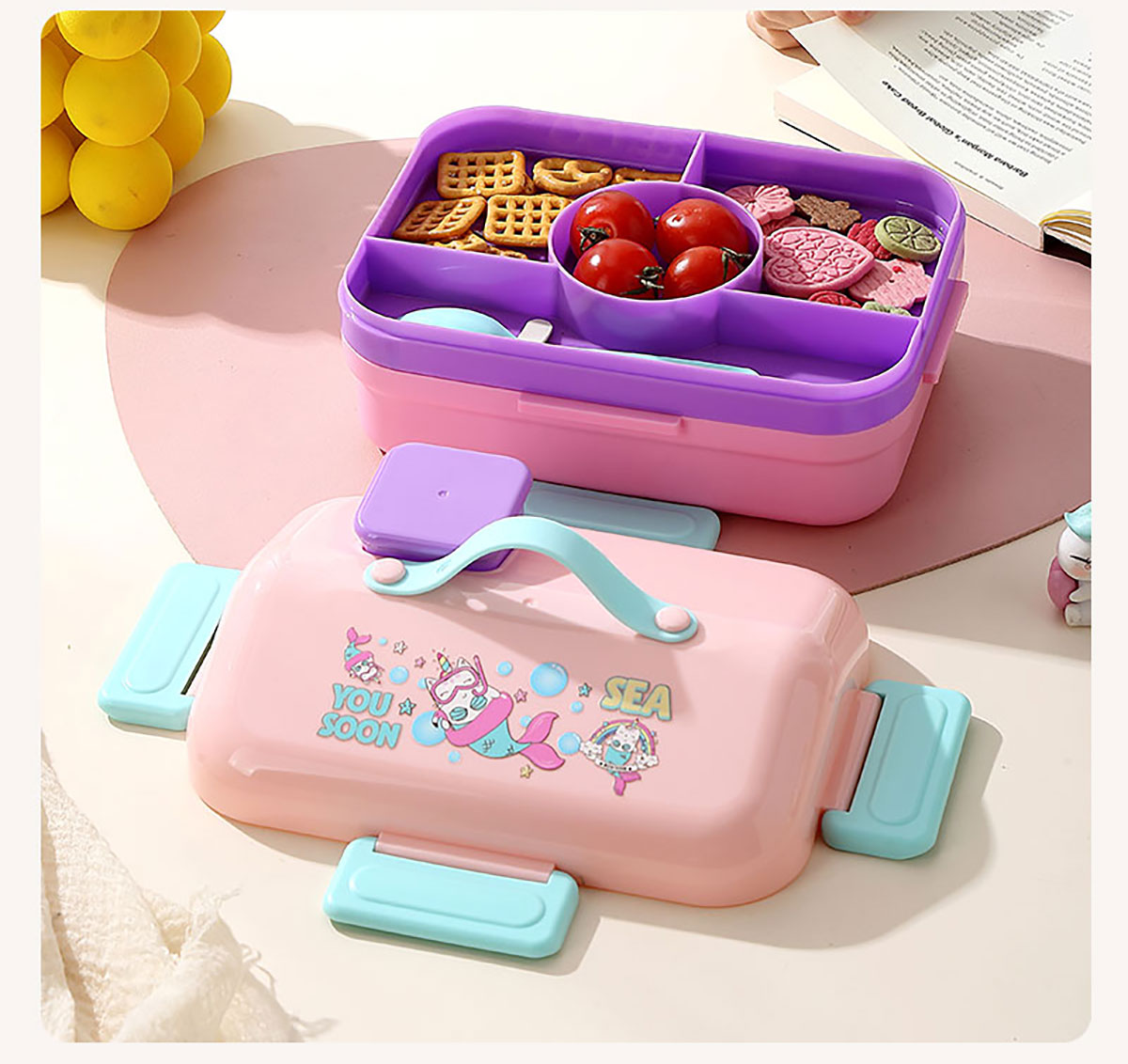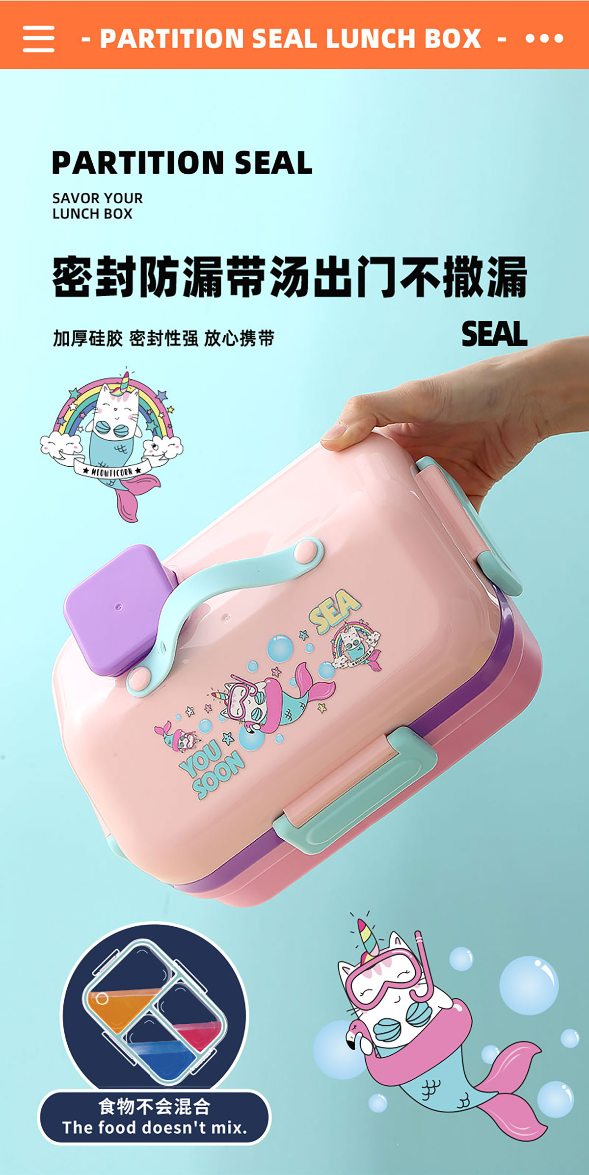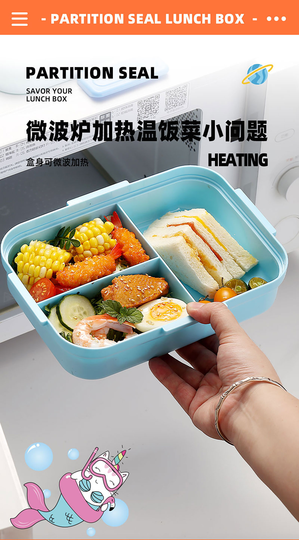 HOUSE房子不串味餐盒(長(zhǎng)方形塑料3格1270ml+碗70ml+PP勺)