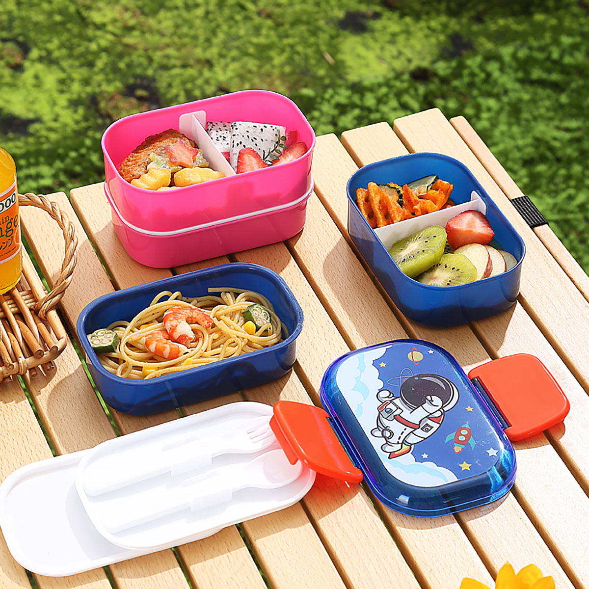帶叉勺雙層兒童飯盒520ml